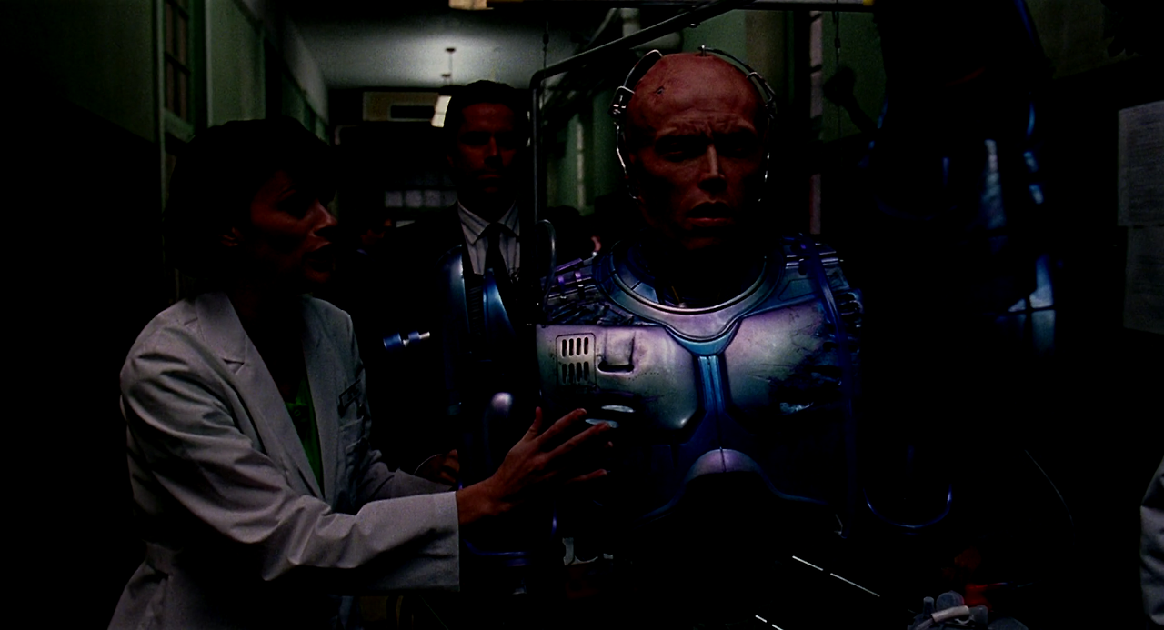올드만 회장은 이런 사실을 눈곱만큼도 모르고 교태를 부리며 달려오는 팩스를 데리고 밖으로 나가서는 몰려드는 보도진을 묵살하고, 차를 타고 출발해 버린다. 그 모습을 보고 분개하는 루이스 순경에게 로보캅 머피는 머리의 나사를 조이면서 “참아, 루이스. 우리들은 사람이잖아”라고 말한다.