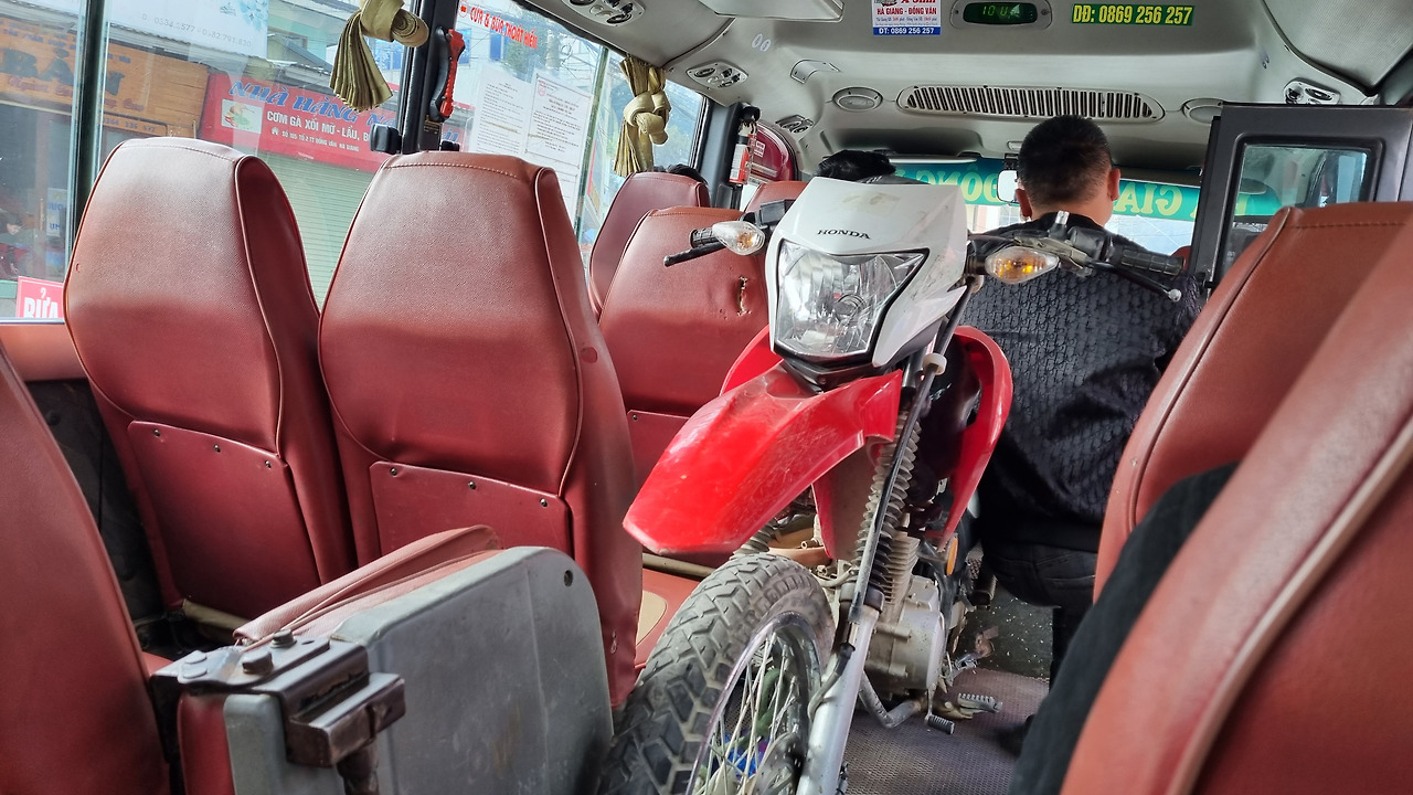 조금 있으니 버스회사 직원이 와서 먼저 오토바이부터 싣겠다며 오토바이를 가져간다. 그리고 10시에 픽업하러 오겠다고 한다. 베트남은 도시 간 이동 교통에 있어 우리나라에 비해 현저히 낙후되어 있지만, 한 가지 편리한 점이 있다. 그것은 기본적으로 도어 투 도어 방식이라는 거다. 웬만한 곳에 있으면 픽업하러 오고, 목적지를 확인한 후엔 원하는 곳까지 데려다준다.