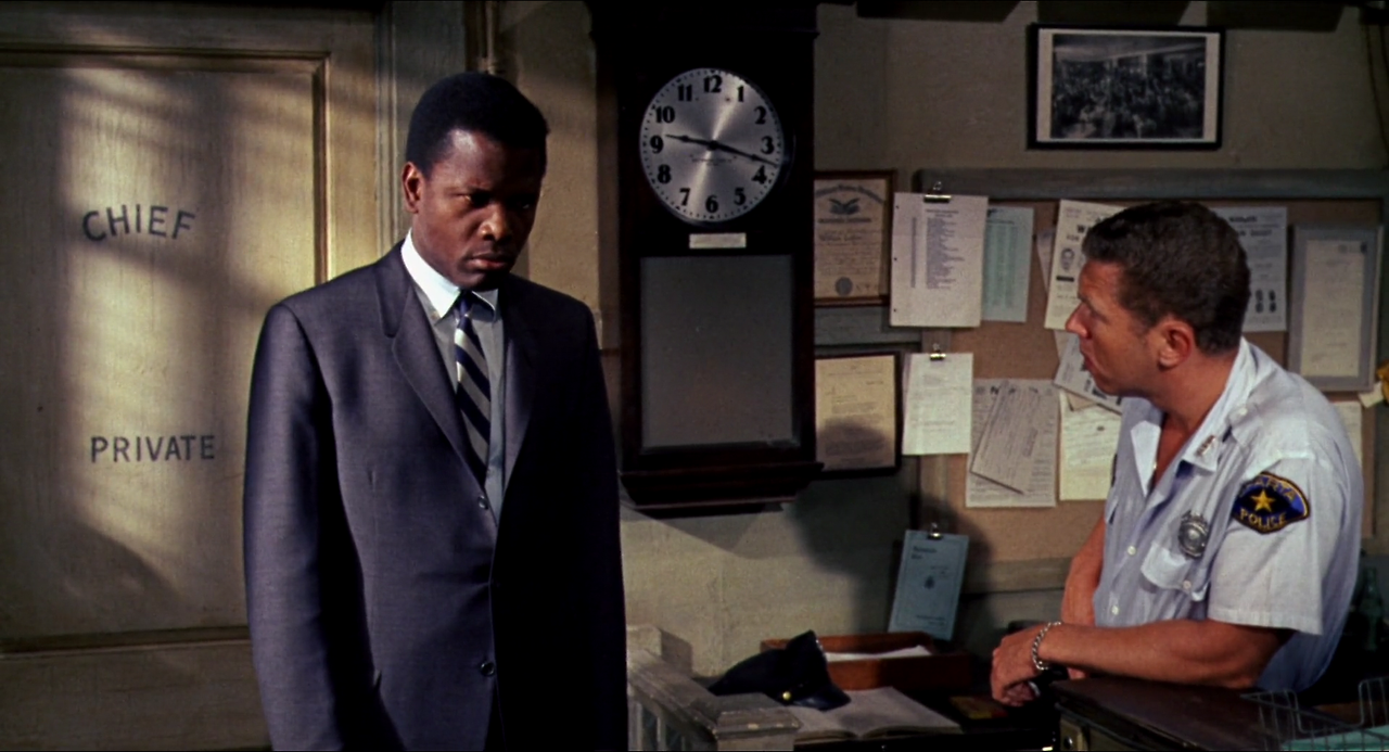 영화 <밤의 열기 속에서>(In the Heat of the Night)는 시드니 포에티어의 대표작 가운데 하나로서, 흑인에 대한 차별이 여전히 남아있던 1960년대의 미국의 작은 시골 마을을 무대로 살인사건을 해결해 나가는 흑인 형사의 이야기를 그리고 있다. 시골 마을에서 살인 사건이 발생하자 수사에 나선 경찰은 역에서 기차를 기다리고 있던 흑인 남자를 용의자로서 체포한다. 그러나 그 남자는 실은 대도시 경찰서 형사로서, 그는 인종차별의 차가운 눈길 속에서도 백인 경찰서장과 협력하여 살인사건을 해결한다는 내용이다. 이 영화는 1967년 미국에서 제작되었는데 아카데미상 5개 부문에서 수상하였다. 아주 좋은 평가를 받아 속편이 계속 제작되었다.