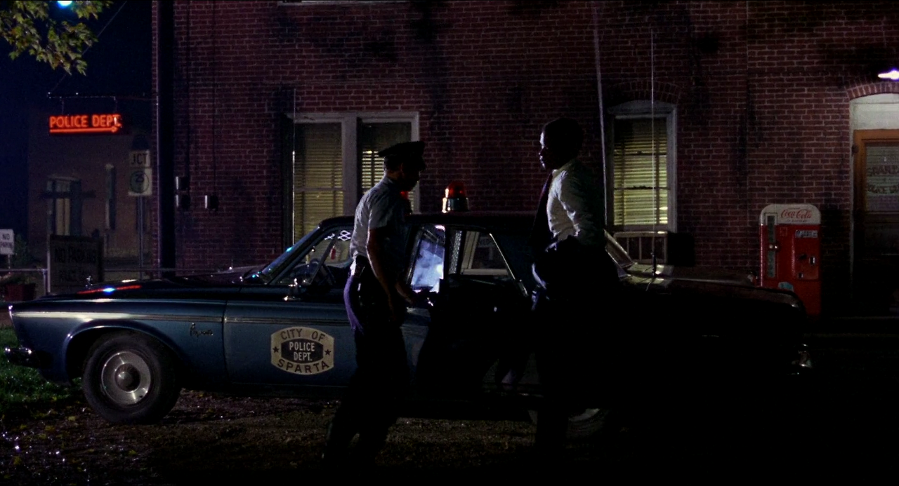 부호이자 대사업가인 필립 콜버트는 미시시피주 스파터에 공장을 건설하기 위해 이사해 왔다. 어느 날 늦은 밤 샘 우드 순경이 순찰을 돌던 도중 길에서 쓰러져있는 콜버트의 타살체를 발견한다. 우드 순경은 근처를 조사하다가 역 대합실에서 버질 팁스라는 흑인 남자를 발견하고는 신체 수색을 한 결과 지갑에 상당한 돈이 들어있다는 사실을 확인한다. 우드 순경은 흑인인 버질이 많은 돈을 갖고 있는 것을 보고 그가 틀림없이 범인이라고 확신하고 그를 체포하여 경찰서로 데려온다. 이곳 경찰서는 시골마을이라 경찰서라 하지만 직원은 네댓 명 밖에 되지 않는다.