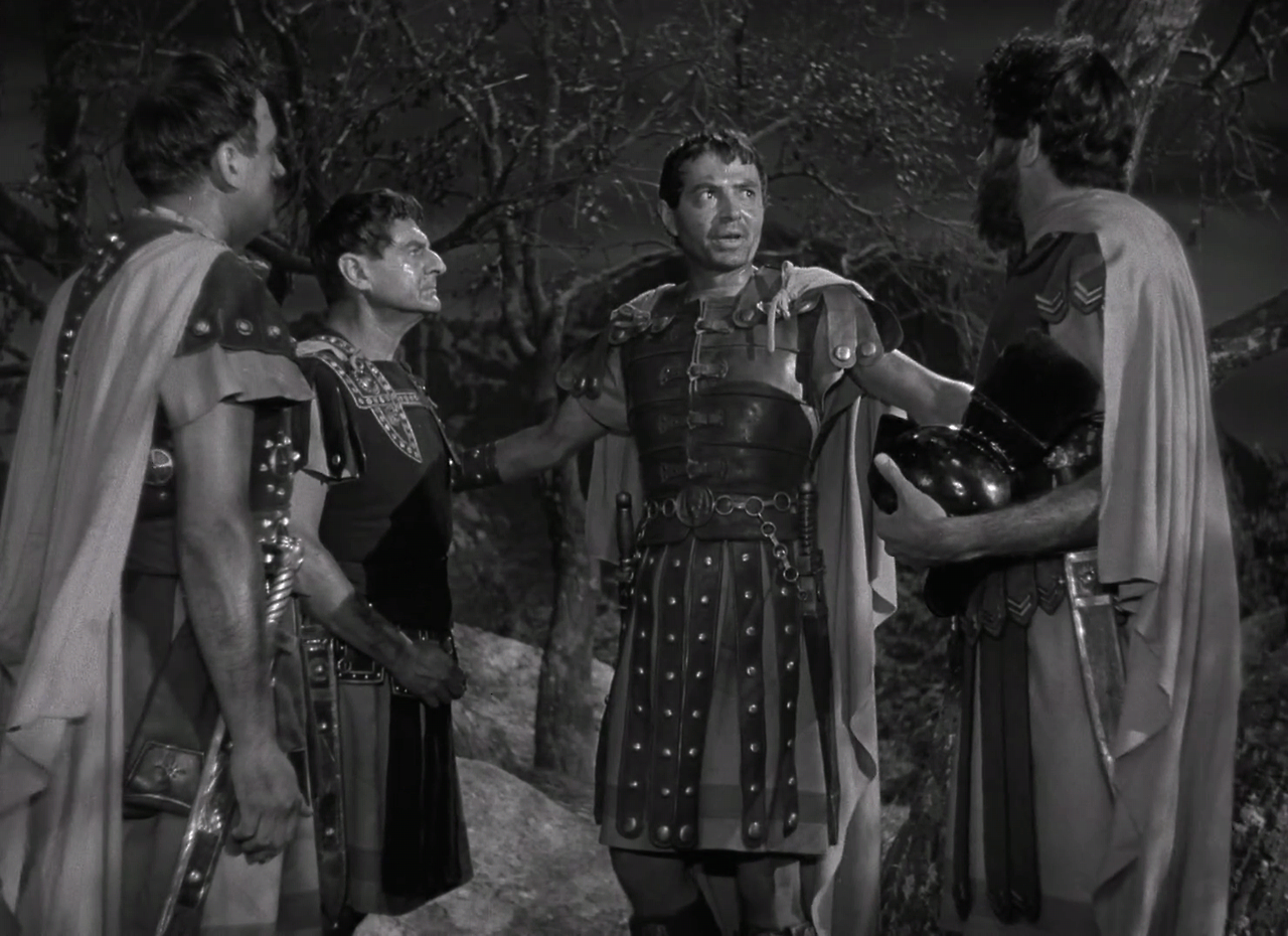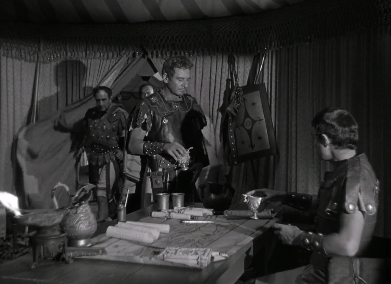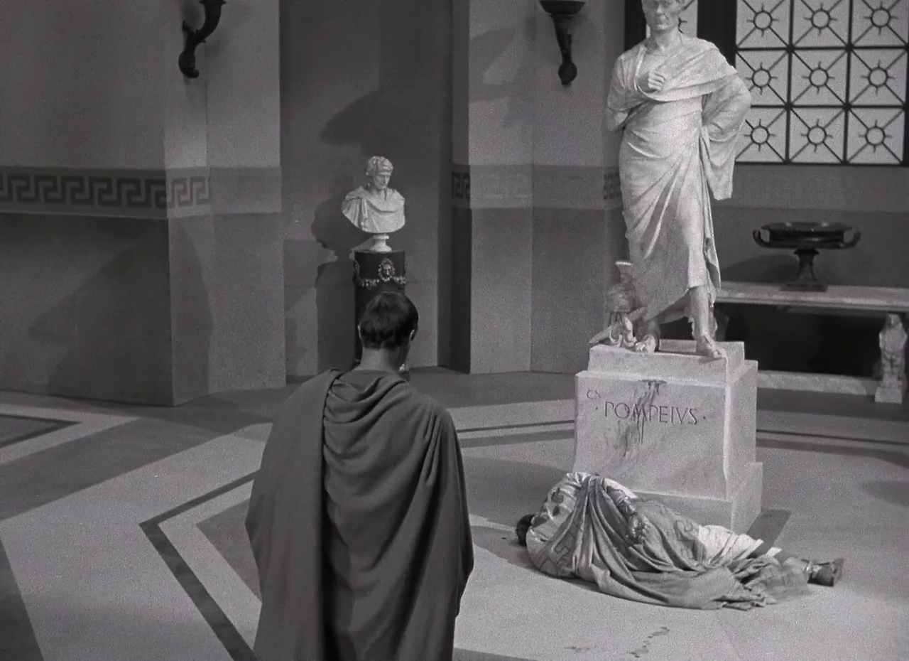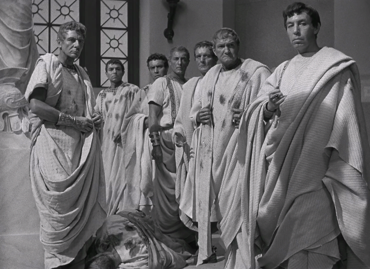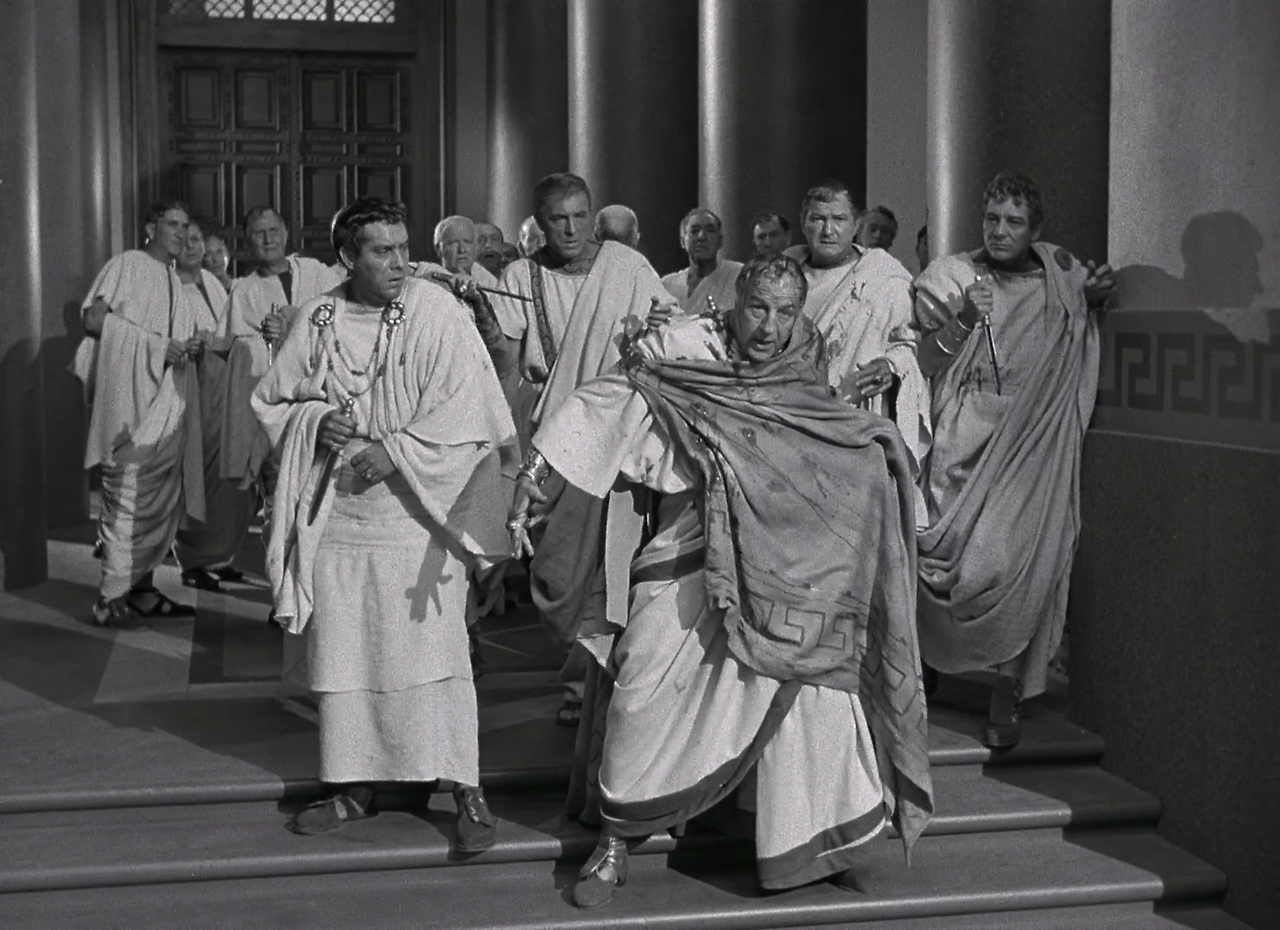 영화 <줄리어스 시저>(Julius Caesar)는 셰익스피어의 동명의 희곡을 원작으로 하여 1953년 미국에서 제작되었다. 이 영화의 제목을 보면 주인공은 당연히 시저일 것으로 생각되지만, 그렇지 않다. 시저는 암살 당일에 잠깐 등장할 뿐이며, 실질적인 주인공은 시저의 암살자 가운데 한 사람인 브루투스와 브루투스를 단죄하는 안토니우스라 보는 것이 타당할 것이다. 영화의 전반부는 시저의 암살계획을 둘러싼 브루투스의 고뇌, 그리고 후반은 브루투스의 암살을 비난하고 브루투스 일파를 정벌하는 안토니우스의 활약을 그 내용으로 하고 있다. 이 영화는 아카데미상 미술상을 수상하였다.