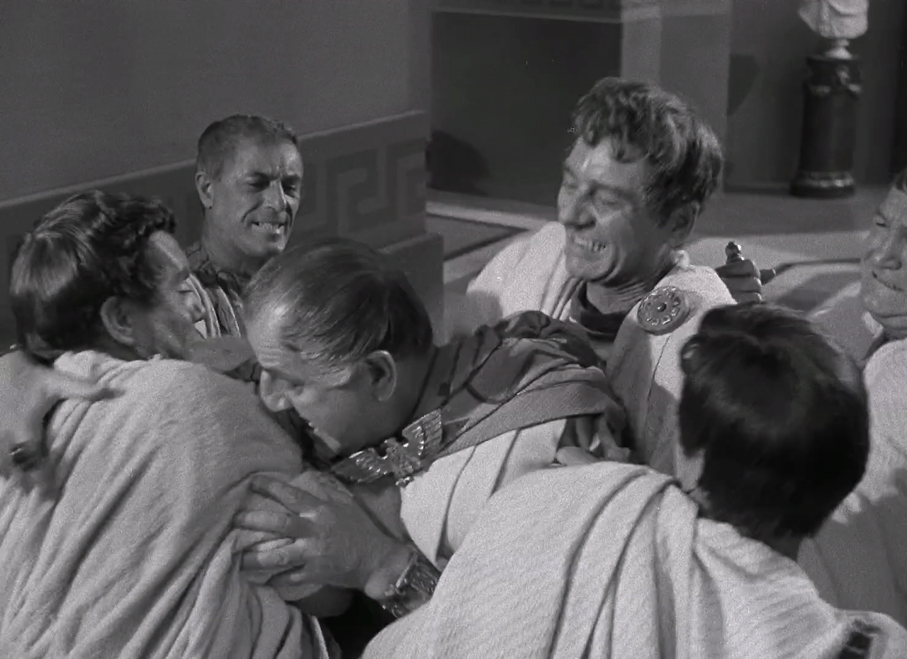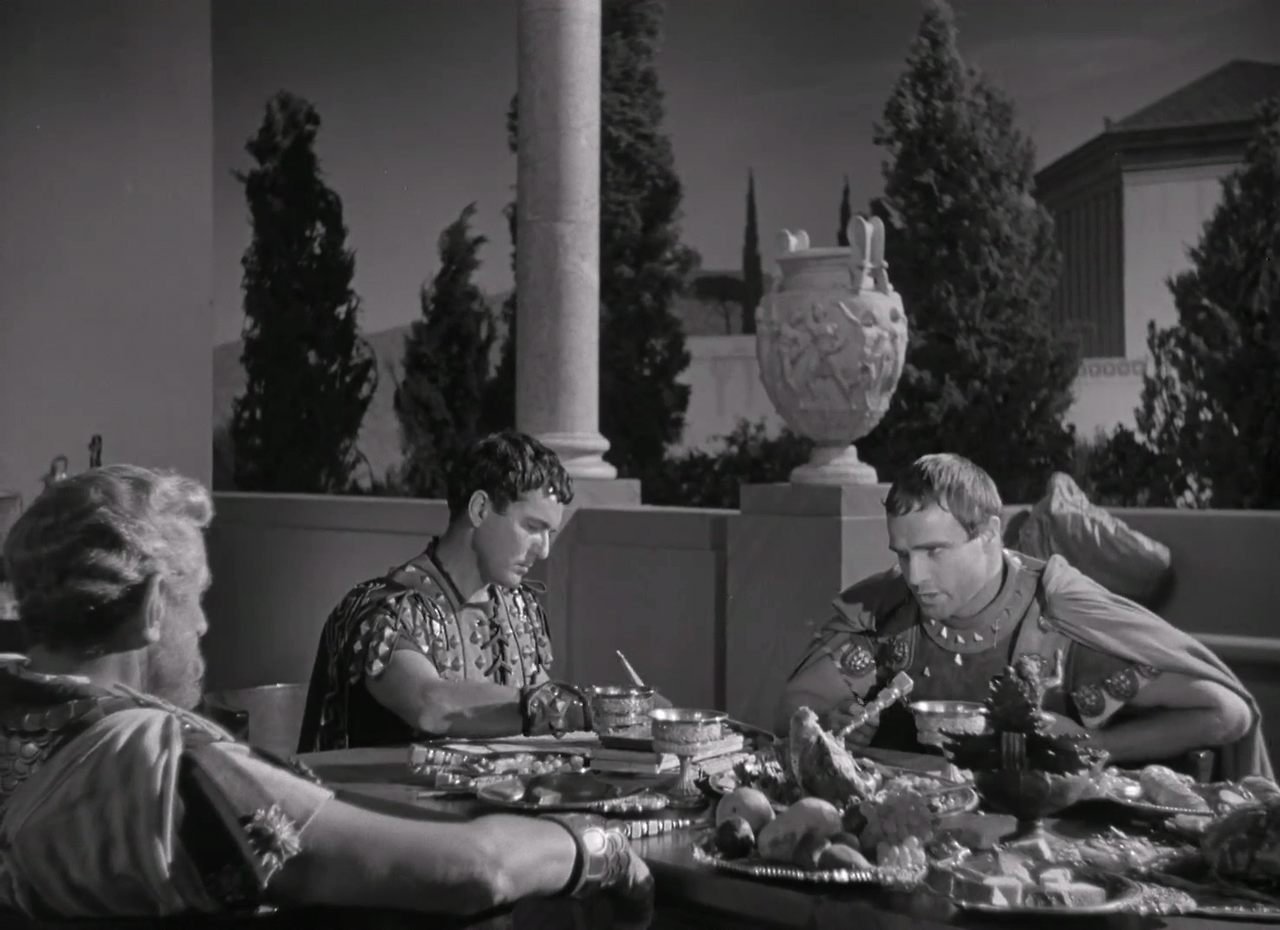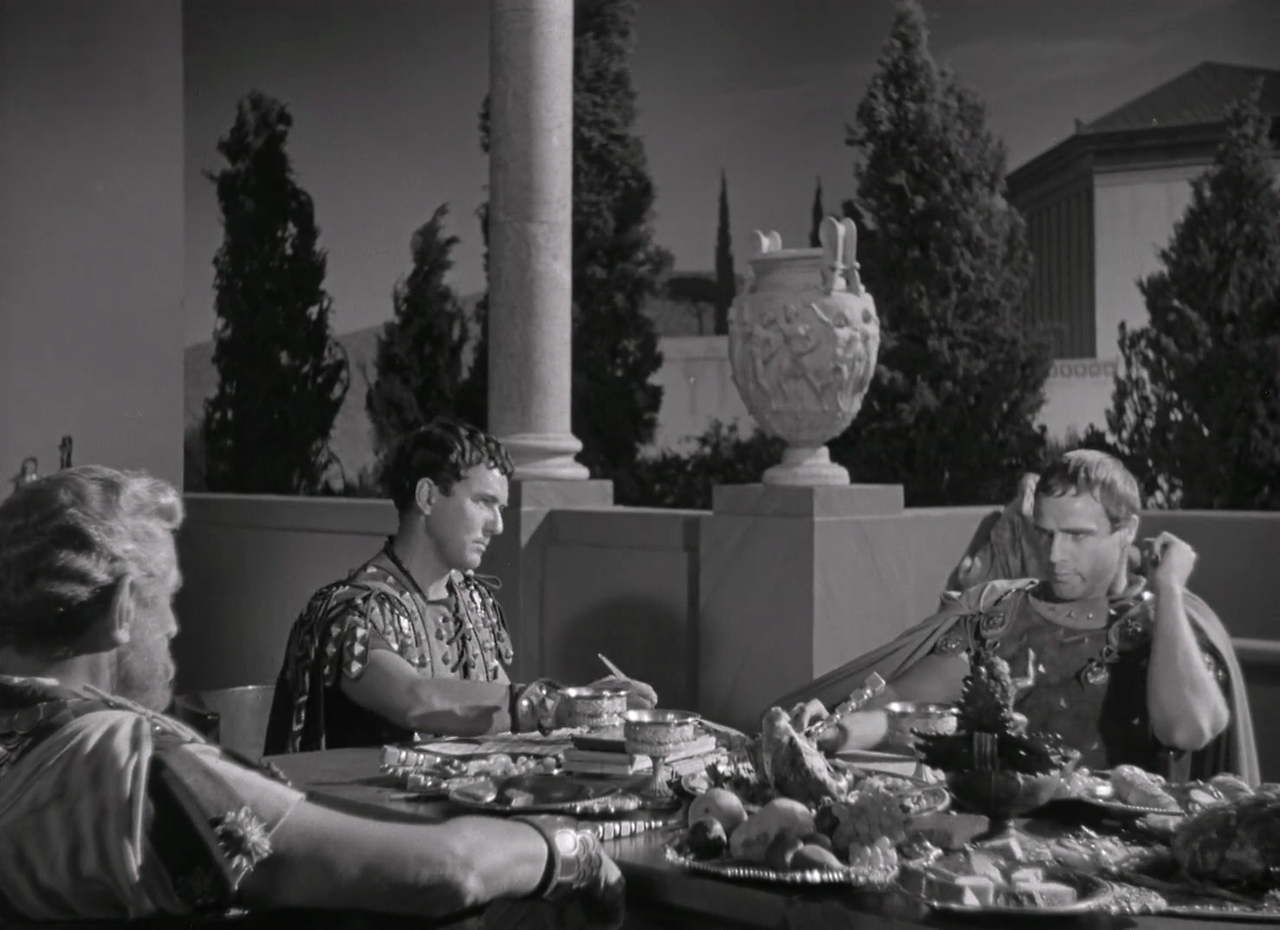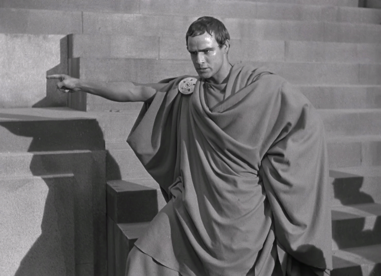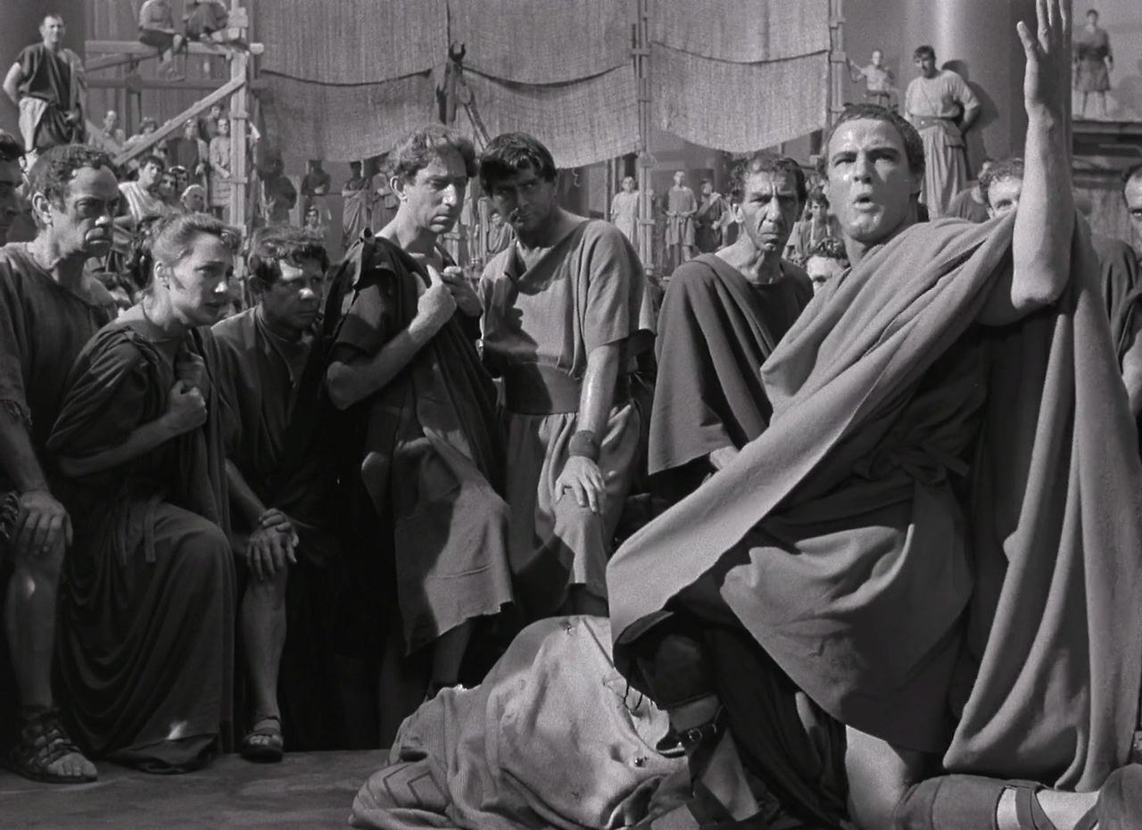 브루투스에 이어서 시저의 오른팔이라 할 안토니우스(말론 브란도 분)가 연단에 오른다. 그는 브루투스의 고결한 인격과 로마에 대한 충성심을 찬양한다. 그리고 시저에 대한 브루투스의 사랑이 얼마나 진실되었는가를 말해준다. 그리고는 안토니우스는 시저가 얼마나 로마와 로마 시민들을 사랑하였는지, 그리고 시저는 황제가 될 마음이 전혀 없었다는 사실을 시민들을 향해 외친다. 안토니우스의 연설을 들은 시민들의 마음은 다시 돌아선다. 그들은 시저의 죽음을 진정으로 원통해하고 그를 죽인 브루투스 일파들에 대한 분노의 소리를 드높인다.