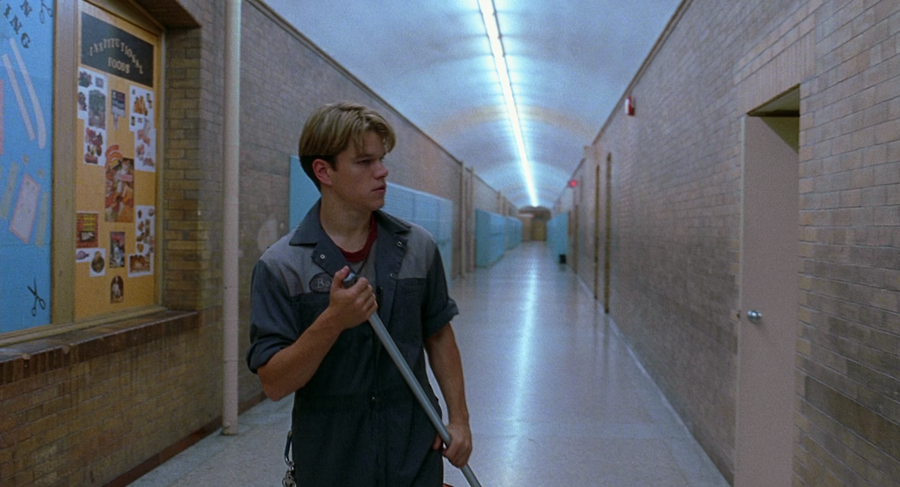 MIT에서 청소원으로 일하고 있는 청년 윌 헌팅은 청소를 하던 도중 강의실 밖에 걸린 칠판에 적혀있는 수학증명 문제를 발견한다. 문제를 본 윌은 서슴없이 그 문제를 풀어나간다. 이때 복도 저쪽에서 랭보 교수가 이를 발견하고 문제가 적힌 칠판에 낙서를 하지 말라며 뛰어온다. 그러자 윌은 곧바로 도망쳐버린다. 칠판의 낙서를 지우려던 랭보 교수는 칠판에 완벽한 답이 적혀 있는 것을 보고는 깜짝 놀란다. 랭보는 자신의 어려운 문제를 단박에 풀어버린 이 수학천재를 찾으려 나섰지만, 그의 행방을 알 수가 없다.