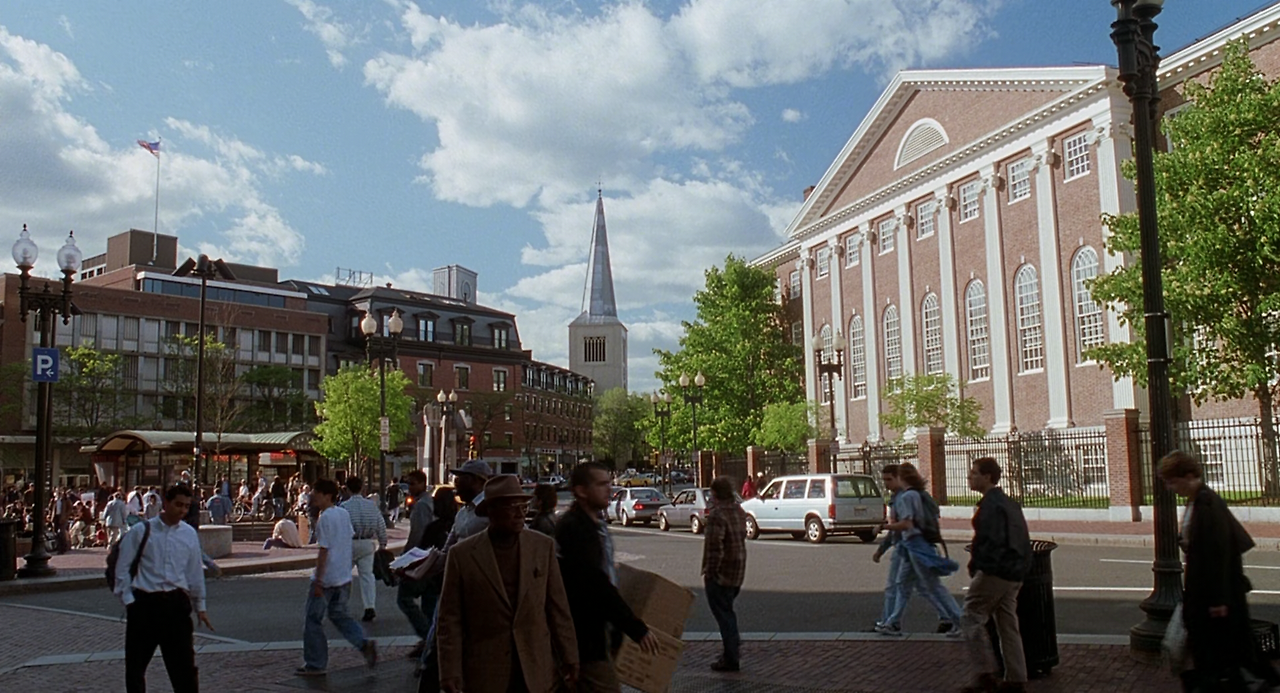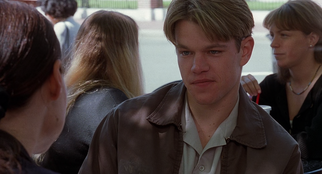 윌은 처키 설리반을 비롯한 동네 친구들과 하버드 대학 인근에 있는 술집에 가서 떠들며 맥주를 마시고 있다. 그의 친구들은 변변한 직업 없이 일용직을 전전하고 있다. 윌은 술집에서 친구들과 함께와 맥주를 마시고 있는 하버드 대학 여학생 스카일라를 만난다. 스카일라는 친구들과 맥주를 마시면서도 학교 숙제를 걱정하고 있다. 스카일라에게 호감을 가진 윌은 그녀에게 다가가 그녀가 고민하고 있던 숙제; 문제를 단숨에 풀어준다. 스카일라 역시 윌에게 호감을 가졌는데, 이 일로 인해 윌에 대한 스카일라의 호감은 더욱 커진다.