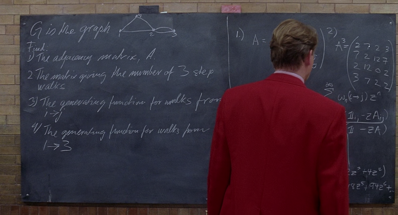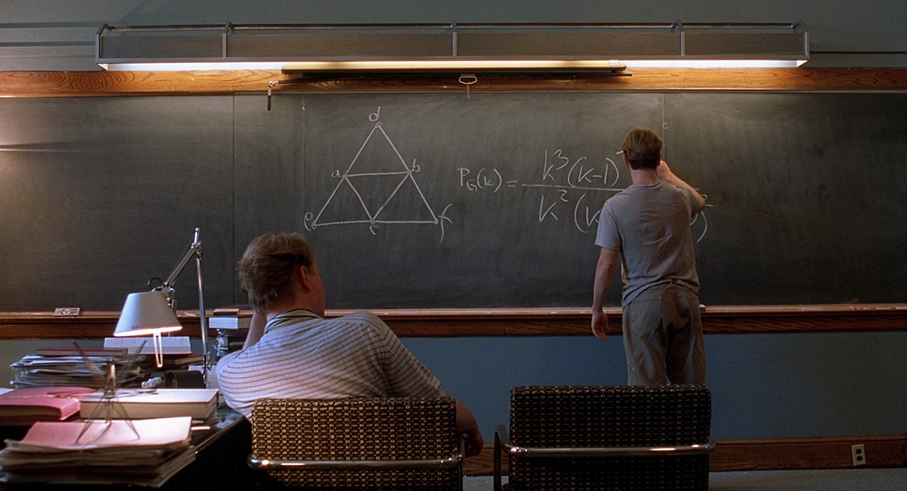 MIT 대학 수학과의 제럴드 랭보 교수는 뛰어난 수학자에게 주는 필즈 메달을 수상한 적이 있는 우수한 수학자이다. 그는 수업시간에 학생들에게 어려운 수학 증명 문제를 내놓고는 정답을 푼 학생은 다음 주까지 교실 밖에 있는 칠판에 그 답을 적으라 한다. 그렇지만 대부분의 학생들이 그 어려운 문제를 마주하고 문제를 풀 엄두도 내지 못하고 나간다.