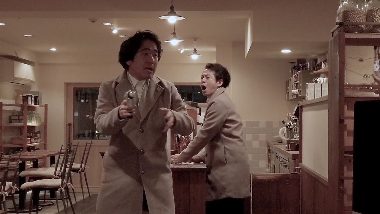 어느 날 밤 카페의 마스터 가토는 가게 문을 닫은 뒤 같은 건물 2층에 있는 자신의 방으로 퇴근한다. 방에서 기타나 치려고 하는데 피크가 보이지 않는다. 피크를 찾는다고 방을 뒤지고 있는데, 갑자기 TV가 켜진다. 가토가 돌아보니 TV 속에 자신의 얼굴이 비쳐지고 있는 것이 아닌가. 놀라서 화면을 바라보니 TV 속의 자신은 카페에 있다. 바로 2분 전의 자신의 모습이었다.