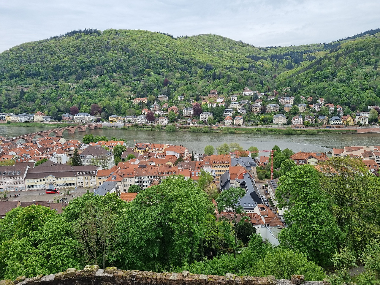성 입장료는 9유로이다. 여긴 경로 할인도 없다. 성으로 올라가니 먼저 넓은 테라스의 전망대가 나온다. 이곳에 오르면 성 아래쪽 풍경이 그림같이 펼쳐진다. 성 바로 아래쪽은 올드타운이고 그곳을 지나면 네카르 강이 흐른다. 강폭은 넓지 않지만 수량이 많고 아름다운 강이다. 하이델베르크성은 아름다운 성이지만 올라오면서는 성 전체의 모습은 보이지 않는다. 성 안으로 들어오면 기대와는 달리 별로 볼 것이 없다.