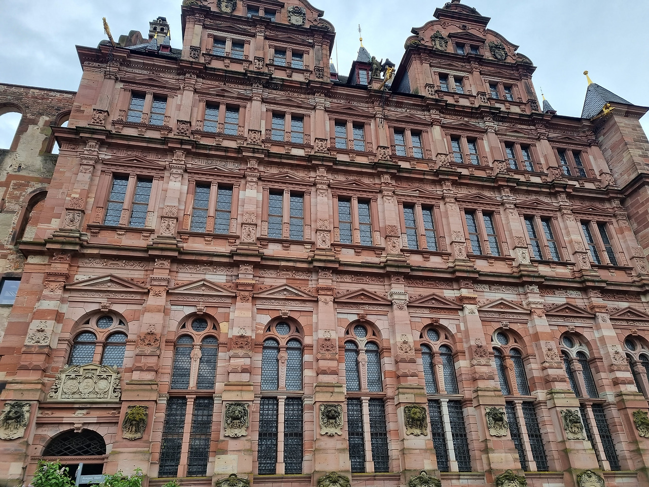 이 성은 13세기 중반에 건설되었다고 한다. 우리로 치면 고려말 무렵이다. 그렇게 건설된 시대를 생각한다면 아름답고 잘 지은 성이다. 처음 지을 당시에는 작은 요새로 시작했지만, 세월이 흐르면서 특히 팔츠 선제후들의 거주지로 사용되면서 성은 점점 더 화려하고 웅장해졌다고 한다. 성 안의 건물 안으로는 들어갈 수 없다. 건물 밖에서 건물 외양만 보는 셈인데, 그저 그런 느낌이다. 성이 오래되었기 때문에 현대에 들어 보수한 흔적이 많이 보인다.