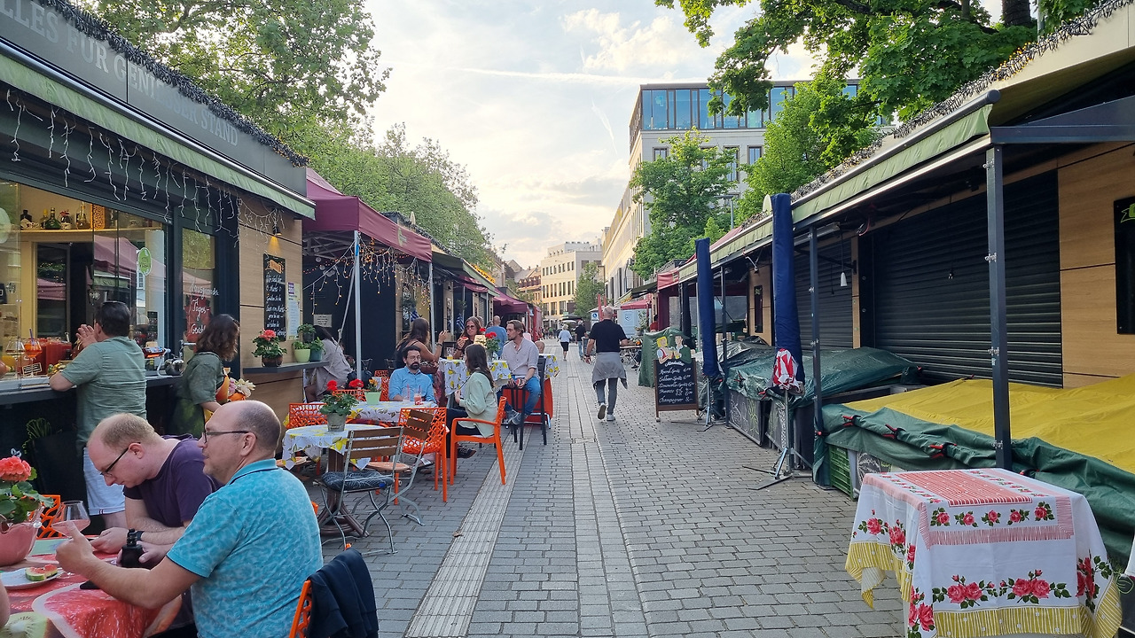 이 일대는 모두 고풍스러운 건물과 거리이다. 길을 따라 조금 걸어가니 공원이 있고 그 옆에는 야시장 같은 것이 섰다. 많은 사람들이 모여 먹고 마시며 왁자지껄하다. 공원 한쪽에는 멋진 분수가 있다. 호텔로 돌아가는 길에 먹을 것이나 좀 사가려 했는데, 오늘은 노동절이라 슈퍼마켓이 대부분 휴무이다.