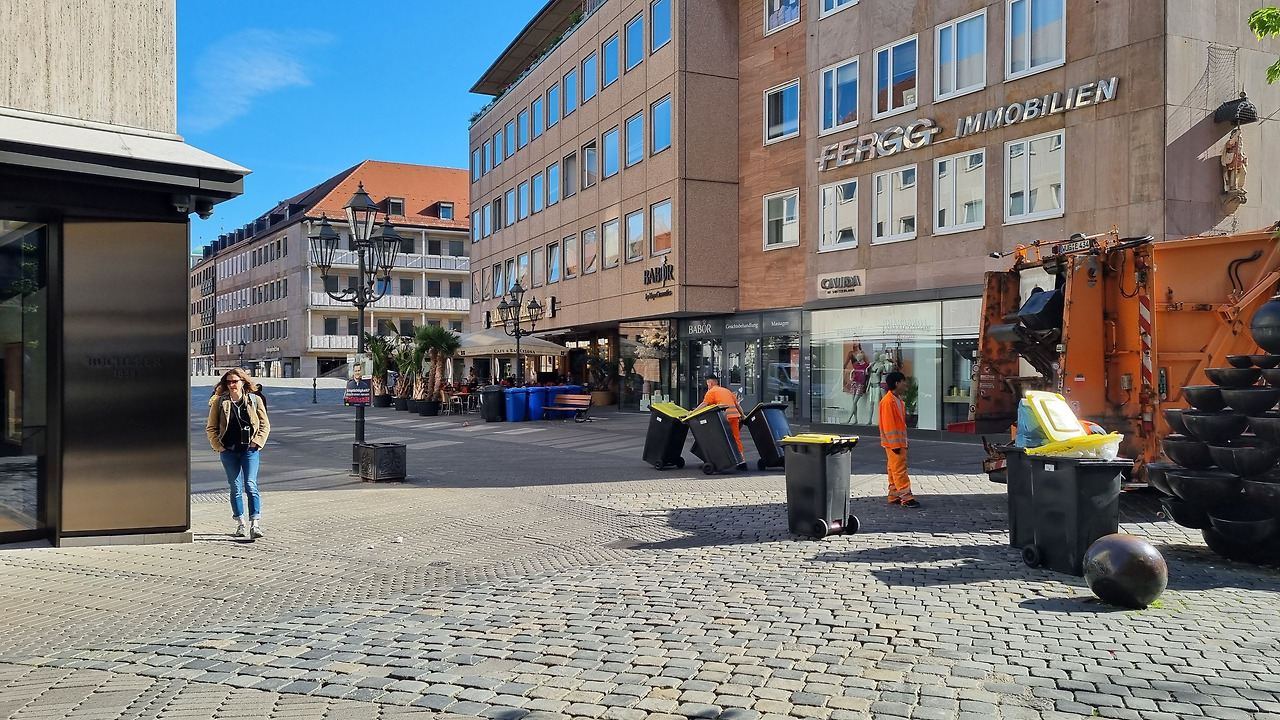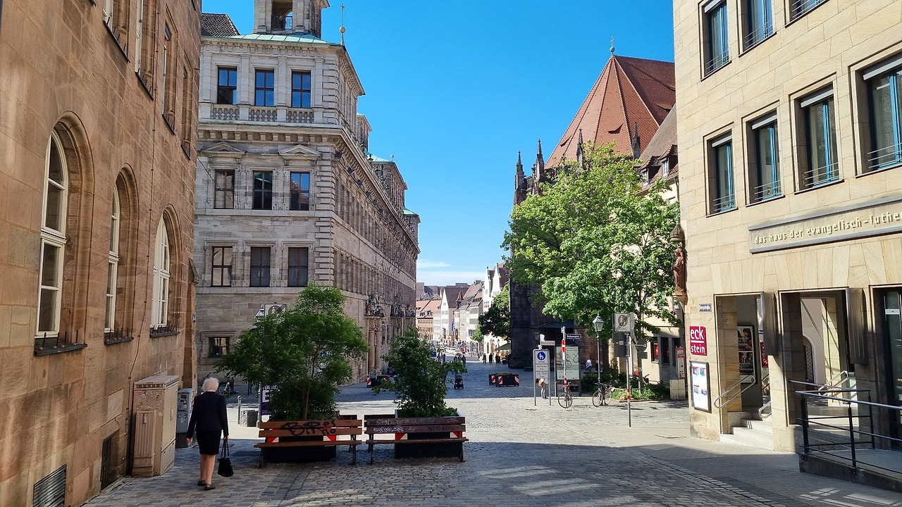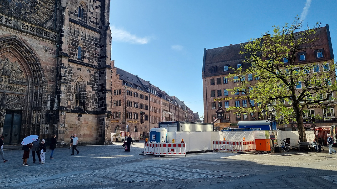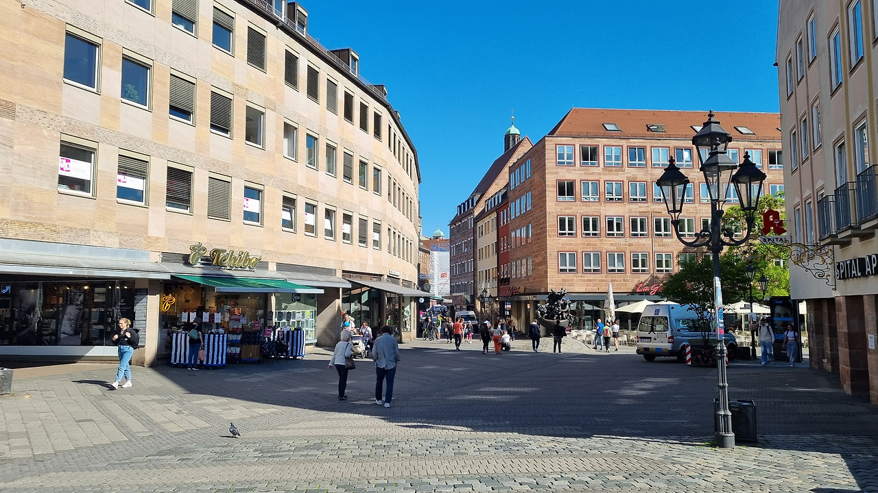 성 로렌츠 교회 앞은 넓은 광장이다. 이제 겨우 9시가 조금 지났을 뿐인데 관광객들이 몰려들기 시작한다. 광장 주위에는 수많은 상업시설이 있는데, 벌써 테이블과 의자를 내놓는 등 장사 준비를 한다.