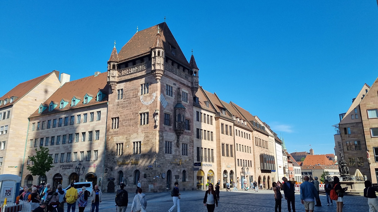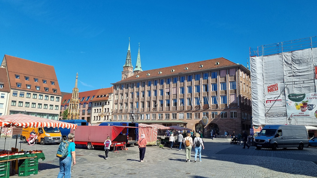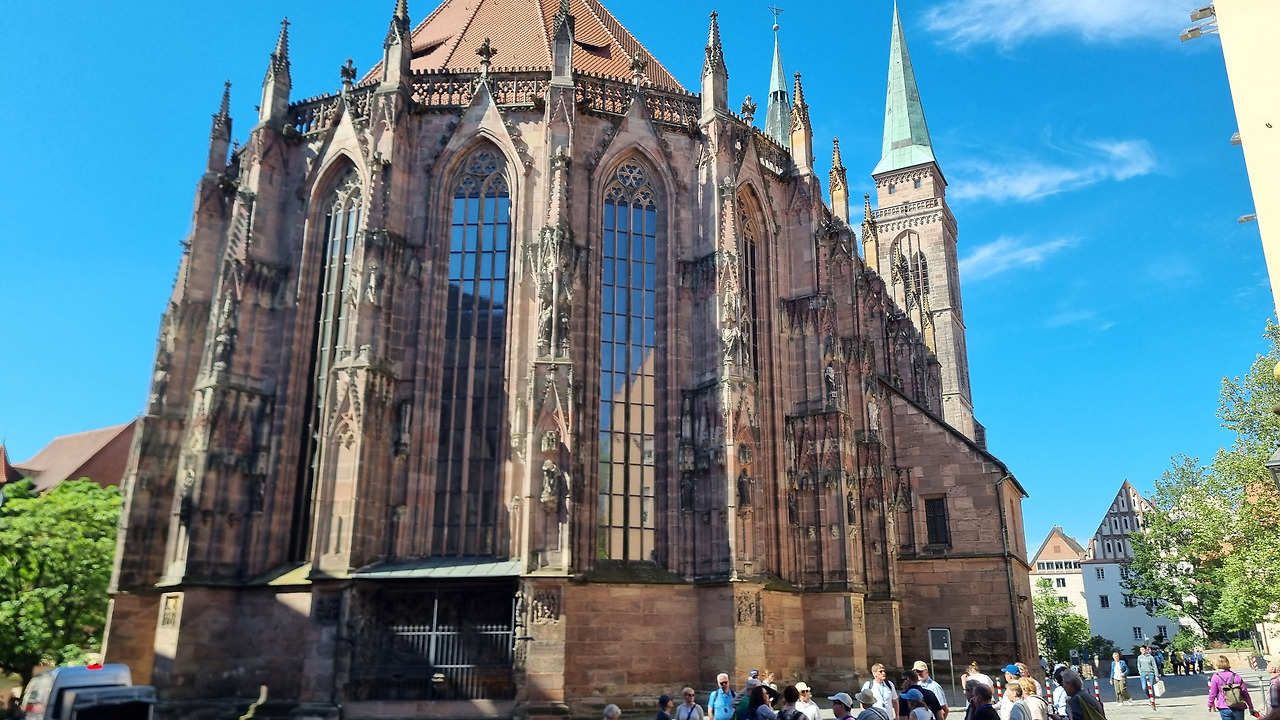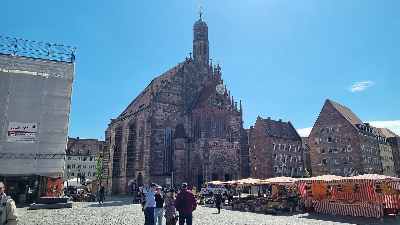구글맵에서 '뉘른베르크'로 검색하면 자동적으로 결정되는 행선지가 있다. 바로 성 로렌츠 교회 일대이다. 이곳에는 뉘른베르크의 역사적 유적들이 몰려 있어 관광객들이 몰리는 장소이다. 어렵게 주차타워를 발견하여 주차한 후 건물밖으로 나오니 바로 성 로렌츠 교회이다. 이 성당은 양쪽에 높은 탑을 가진 고딕식 건물로서 13세기 초에서 15세기에 걸쳐 지어졌다고 한다. 아주 크면서도 아름다운 건물이다.