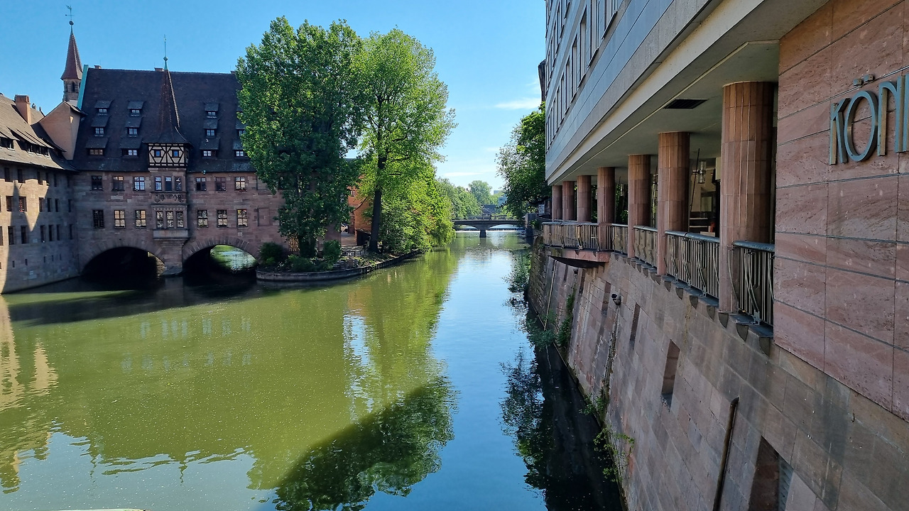 다음 행선지는 뉘른베르크 성이다. 성 로렌츠 교회에서 걸어서 15분 정도 거리다. 가다 보니 좀 큰 개천 크기의 강 위로 다리가 놓여져 있다. 바로 페그니츠(Pegnitz) 강이다. 강 폭은 20~30미터에 불과하여 강이라 부르기는 좀 뭣하지만, 아주 아름다운 강이다. 특히 강가에 건물들과 서로 어울려 그 아름다움을 더하고 있다.