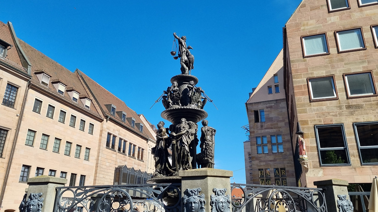 이곳을 지나 광장 옆쪽으로 가면 황금빛으로 빛나는 아름다운 탑이 나오는데 바로 '아름다운 분수'이다. 높이가 거의 20미터 가까이 되어 보이는데, 14세기에 만들어졌다 한다. 얼핏 보면 태국이나 버마 등 동남아 국가들에서 볼 수 있는 탑같이 보이기도 하는데, 고딕 건물의 첨탑을 묘사한 것이라 한다.