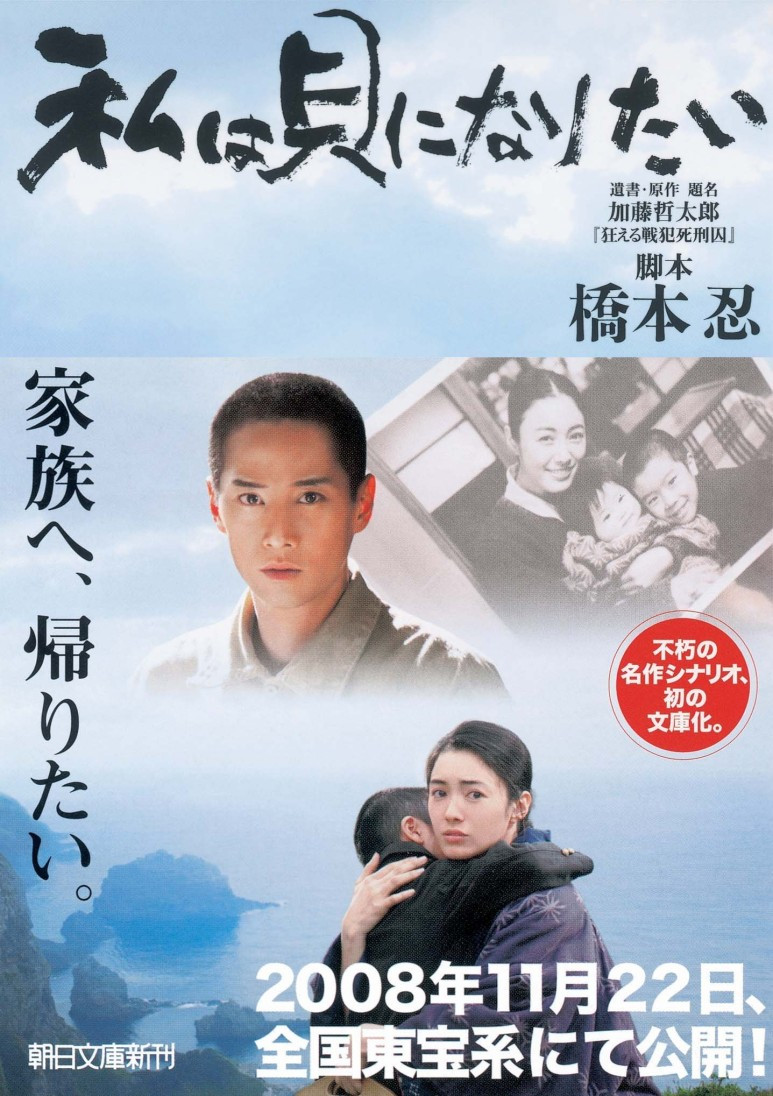 영화 <나는 조개가 되고 싶다>는 전범 재판에서 억울하게 사형선고를 받아 억울하게 죽은 병사의 이야기를 그린 영화이다. 육군 중위 카토 테츠로(加藤哲太郎)는 전범 재판에서 사형 선고를 받고 복역 중 <미친 전범 사형수>(狂える戦犯死刑囚)란 옥중 수기를 썼다. 이 수기의 유서 부분을 기초로 하여 <라디오 동경 텔레비>(현 TBS)가 1958년 <나는 조개가 되고 싶다>라는 제목의 드라마를 방송하였다. 2차 세계대전 중에 상관의 명령으로 포로를 총검으로 찔러 죽인 이발사가 전후 C급 전범으로서 체포되어 사형에 이르기까지를 그린 드라마이다. 이 영화는 1959년에 처음으로 영화화되었고, 1994년에는 다시 TV 드라마로서 리메이크되었다. 그리고 2008년에 다시 영화화되었다.