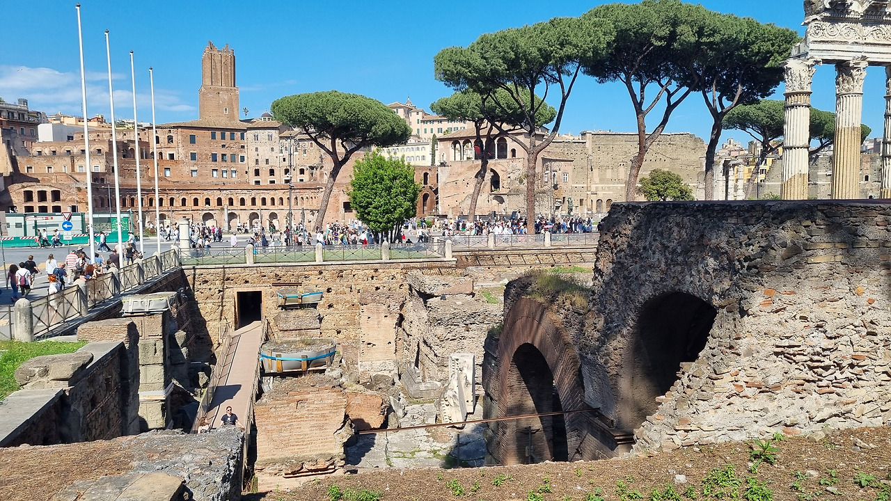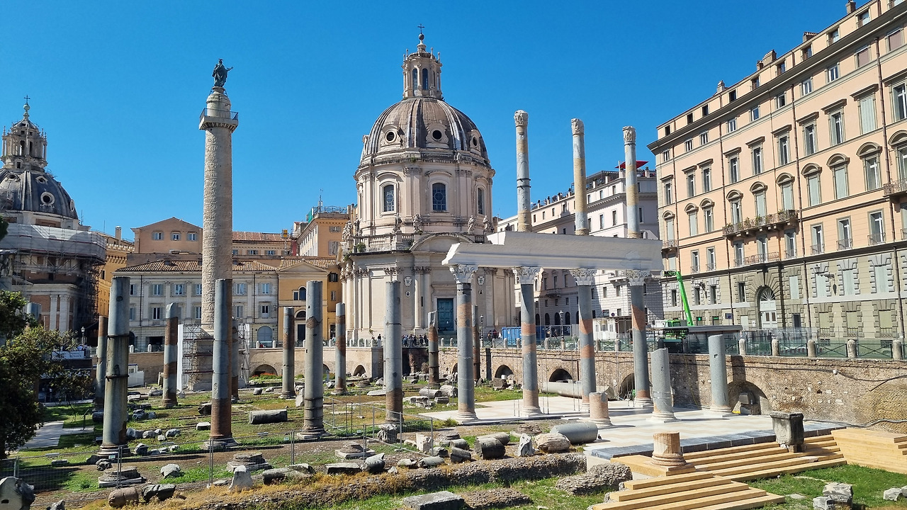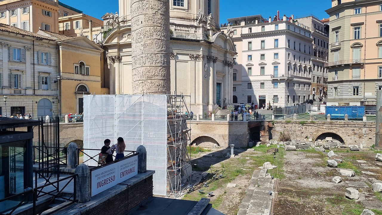 포로 로마는 트라야누스 포럼(Trajan's Forum)부터 시작된다. 이 광장은 로마제국의 황제 트라야누스(Trajan)의 통치 시대인 1세기말에서 2세기 초에 걸쳐 조성되었는데, 로마의 중요한 공공건물들이 모여있다. 광장의 중앙에는 높은 원통형의 탑이 있는데, 바로 트라야누스 기념탑(Trajan's Column)이다. 트라야누스는 인프라를 개선하고 문화적 발전에 기여했을 뿐만 아니라, 다키아, 아르메니아, 메소포미미아 등을 쳐 로마 영토를 크게 확장시킨 공로가 있다. 트라야누스 기념탑은 특히 트라야누스의 전쟁승리를 찬양하기 위해 건설되었다. 원통형 탑의 겉면에는 나선형의 형태로 트라야누스의 승전기록들이 정교하게 조각되어 있으나, 멀리 서는 그것이 제대로 보이지 않았다. 이번 로마 여행에서 가장 보고 싶었던 유물이었다. 사진으로 볼 때는 아주 굵고 높은 탑이라고 생각했는데, 상상했던 것만큼 굵지도 높지도 않다.