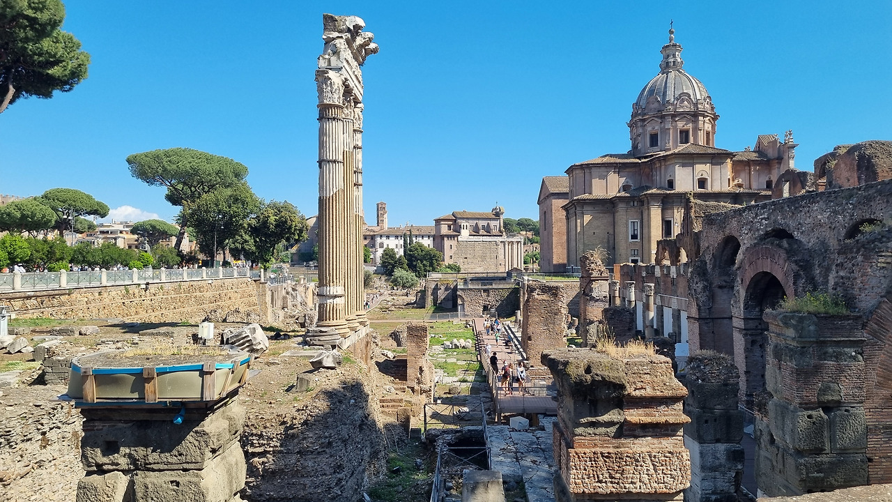 트라야누스 포럼을 돌아 나오면 3개의 높은 돌기둥이 동량을 받치고 있는 유적이 나온다. 바로 베누스 게네트릭스 신전의 유적이라 한다. 베누스 게네트릭스 신전(Temple of Venus Genetrix)은 “사랑의 여신”인 비너스의 신전이다. 이 신전은 0세기 카이사르에 의해 건립되었다. 중요한 다른 신들도 많은데 왜 하필 비너스의 신전을 이곳에 지었는가 의문이 떠오롤 수 있는데, 로마인들은 자신이 비너스의 자손이라고 생각하였기 때문이다.