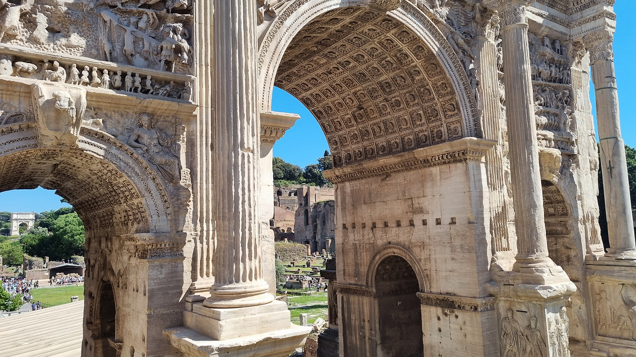 베누스 게네트릭스 신전에서 조금 더 올라가면 셉티미우스 세베루스 개선문이 나온다. 세베루스 황제가 파르티아와의 전쟁에서 승리한 것을 기념하여 만들었다고 한다. 유심히 살펴보면 이 개선문은 어딘가 파리의 개선문과 닮았다는 느낌을 갖게 된다. 프랑스 파리에 있는 개선문은 바로 이 셉티미우스 세베루스 개선문에 영감을 받아 건축되었다고 한다.
