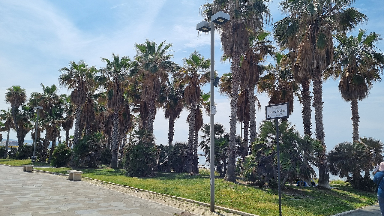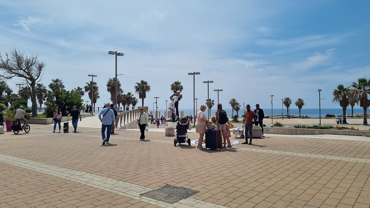 바닷가에서 조금 떨어진 곳에 큰 주차장을 찾았다. 주차 티켓 발권이 쉽지 않다. 마침 주차장을 관리하는 흑인 청년이 있어 도움을 부탁했더니 친절하게 가르쳐준다. 이젠 다른 곳에 가더라도 혼자서 주차티켓을 발급받을 수 있을 것 같다. 어렵게 주차하고 해변으로 내려갔다. 드문드문 사람들이 해변 산책을 즐기고 있다. 성미 급한 아가씨들 몇몇은 벌써 수영복을 입고 포즈를 취하며 사진을 찍고 있다. 아직 철이 일러 바닷가에는 사람이 그다지 없는 것 같다. 해변을 조금 걸으니 큰 남녀 키스 상이 나타난다. 미군 수병과 묘령의 아가씨가 격렬히 키스하는, 그 유명한 2차 세계대전 종전 사진을 입상으로 만든 것이다. 이탈리아는 제2차 세계대전의 패전국이다. 승전국의 상징적 사진이 이렇게 큰 입상으로 만들어져 있으니 좀 묘한 생각도 든다.