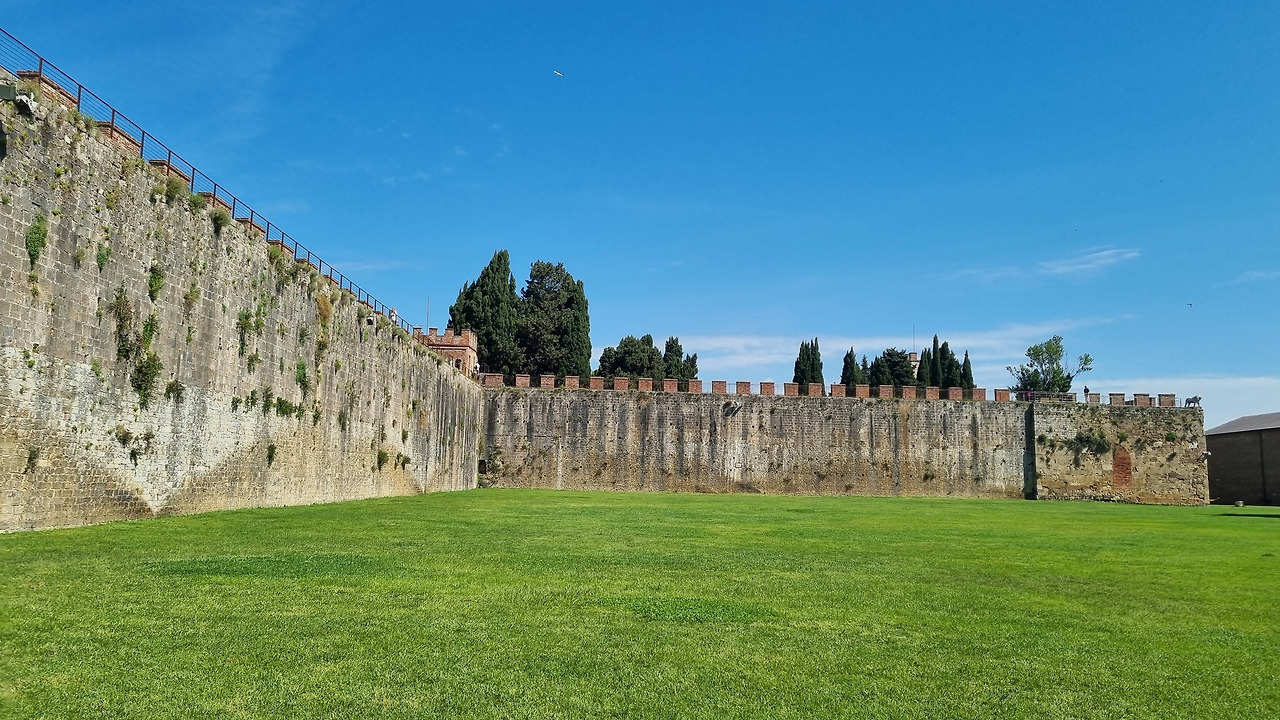 지금까지 가 본 대부분의 이탈리아의 도시에서는 역사유적과 사람들의 일상이 공존하고 있었다. 대부분의 올드타운에는 사람들이 실제로 거주하고 있어 역사적 건축물이 시민들의 생활에 녹아들어 있는 느낌이었다. 이에 비해 피사 성곽 안에는 상주 주민이 없다. 철저히 관광객들에게 보여주기 위한 공간만으로 이루어져 있다는 의미이다. 피사 성곽은 우리나라의 읍성 정도의 크기로 보인다. 아마 충청도의 해미 읍성과 비슷한 넓이가 아닐까 짐작된다.