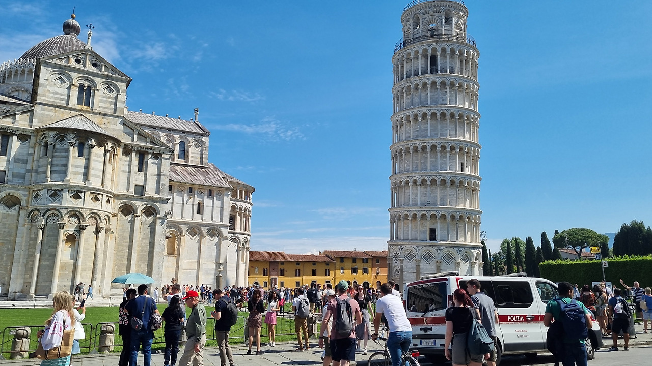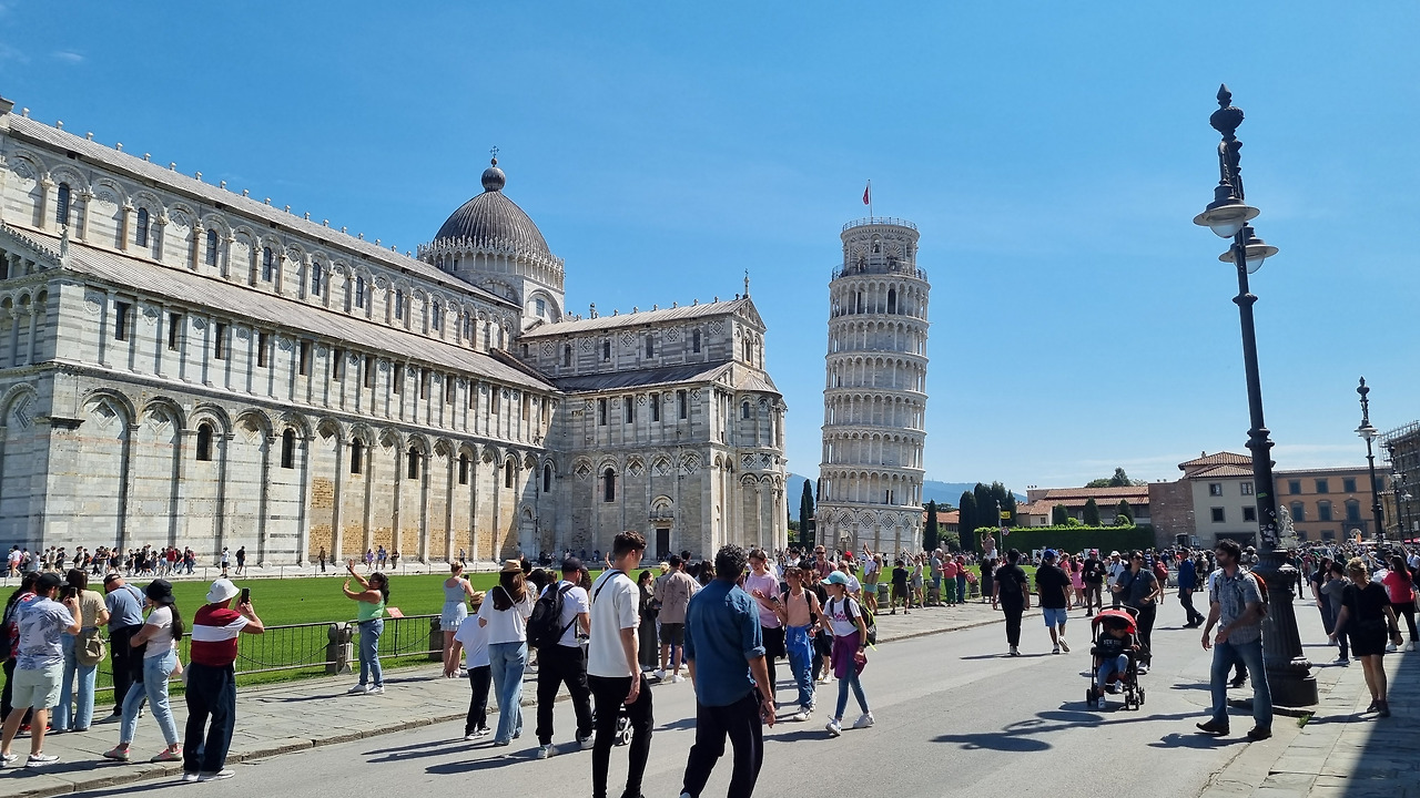 사람들은 피사의 사탑과 멀리서 혹은 가까이서 갖가지 포즈를 지으며 사진을 찍는다. 그러면 탑을 손바닥 위에 올려놓은 사진, 쓰러지는 탑을 떠받치는 사진, 탑을 업는 사진, 탑을 밀어 쓰러트리는 사진 등 갖가지 포즈가 나온다.