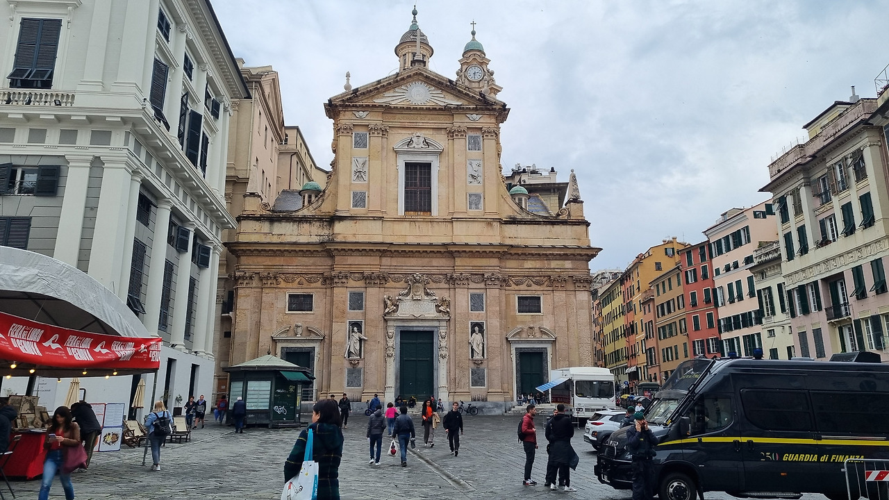 조금 더 올러가면 조그만 광장이 나오고 광장 위쪽에는 제노바 대성당이 서있다. 전면부는 역시 대리석으로 장식되어 있다. 상당히 큰 성당이긴 하지만 이 며칠 동안 하도 크고 화려한 성당을 많이 봐온 터라 그저 그렇게 느껴진다. 성당은 언덕 경사면에 지어졌기 때문에 앞부분은 낮은 쪽에 있는 광장에 뒷부분은 높은 쪽에 있는 광장에 걸쳐있다.