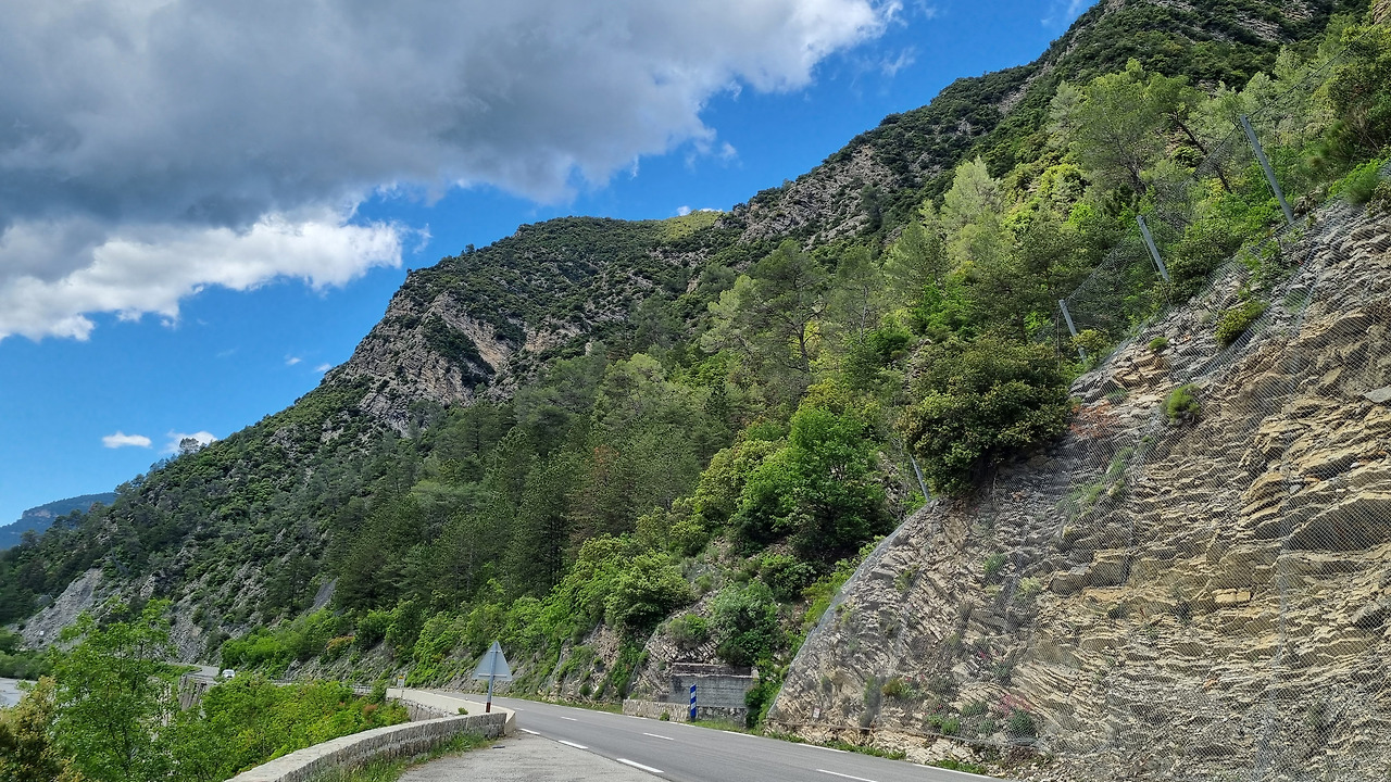내일 찾아갈 고르즈 베르동은 국립공원인 산악지대이기 때문에 주위에 도시가 없다. 그래서 최대한 고르즈 베르동에 가까운 마을을 찾아 예약한 것이 오늘의 숙소이다. 니스에서 북쪽 방향으로 난 고속도로를 달린다. 앞쪽 저 멀리는 산이 첩첩이 기다리고 있으며, 가장 뒤쪽에 보이는 높은 산에는 흰 눈이 쌓여있다. 한참을 달린 후 고속도로를 빠져나왔더니, 얼마 안 가 산속도로로 들어선다. 그저께도 산속 마을에서 잤고, 어제도 깊은 산속 숙소에서 머물렀다. 오늘도 또 산속 마을에서 자야 할 것 같다.