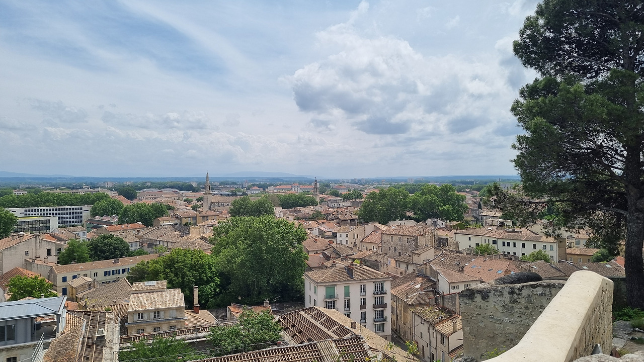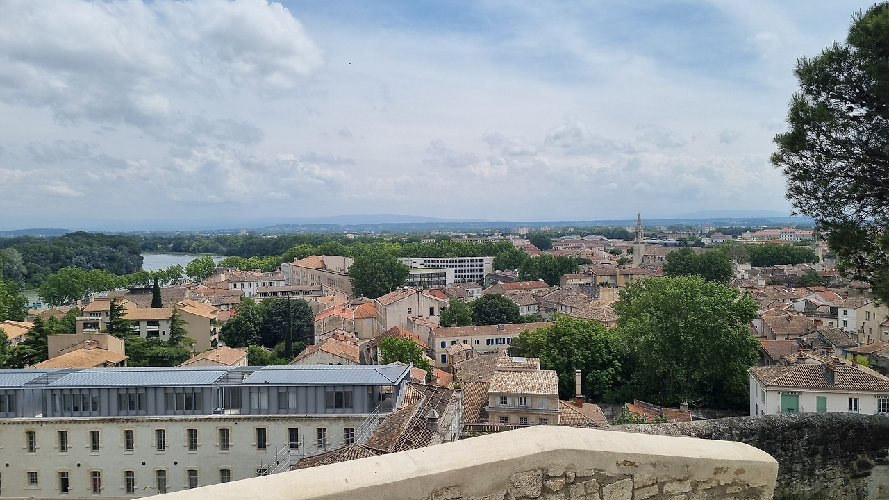 로쉐 데 돔의 한쪽에는 낮은 벽이 서있다. 그렇게 높은 위치는 아니지만 아비뇽시 자체가 평지를 이루고 있기 때문에 이곳에 서면 시가지 전체가 한눈에 보인다. 왼쪽 성벽 바깥쪽에는 론강이 흐르고 있다. 별로 크지는 않지만 수량이 풍부하고 숲으로 싸인 아름다운 강이다. 성벽 안으로 오래된 집들이 촘촘히 들어서있다. 도시 전체가 거대한 하나의 문화재라 할 것이다. 이곳에서는 교황청 건물의 뒷모습이 보인다.