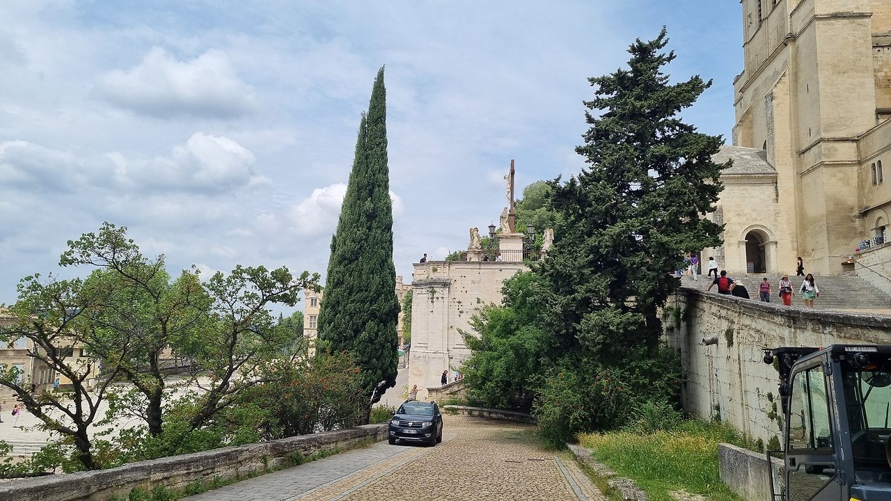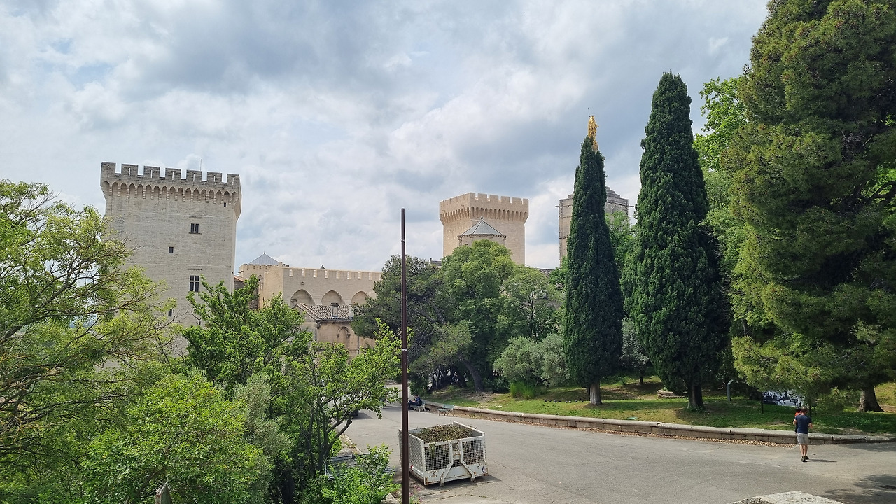 오늘의 숙소는 아비뇽시의 중심지에 가기 전에 위치하고 있다. 아직 12시도 안 되었기 때문에 아비뇽을 관광한 후에 호텔로 가기로 했다. 고속도로를 빠져나와 아비뇽시로 달려가니, 오른쪽은 수량이 풍부한 아름다운 강이고 왼쪽은 오래된 성벽이 나온다. 내비에 목적지를 아비뇽 교황청으로 맞추어 두었더니 성문 안으로 들어가라고 한다.