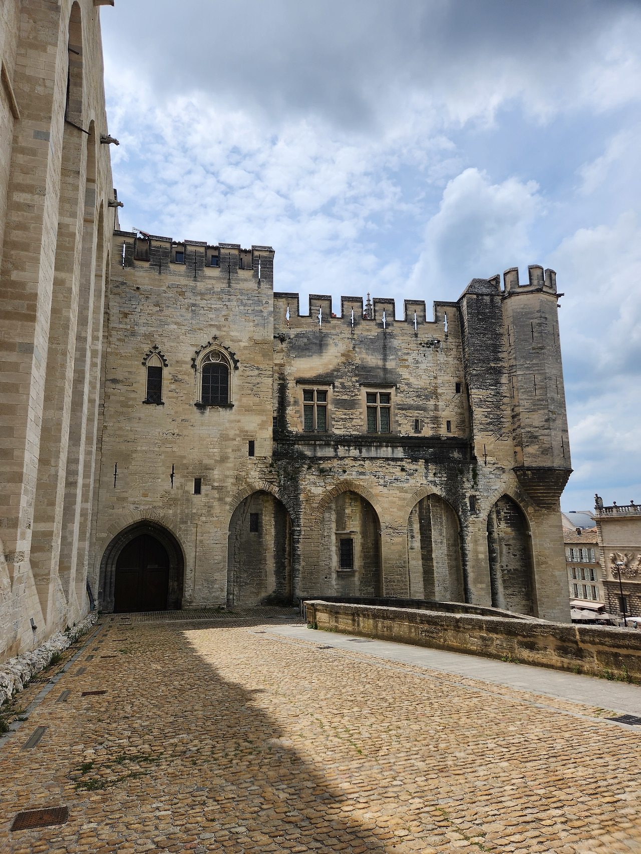 로쉐 데 돔은 교황청 건물과 바로 연결된다. 교황청 바로 앞에는 십자가에 못 박힌 예수상이 높이 서있다. 예수상 쪽에서 건물을 바라보면, 왼쪽의 뾰족한 높은 탑이 있는 건물이 아비뇽 대성당이고, 오른쪽으로 두 개의 탑이 받치고 있는 건물이 교황청이다. 교황청 건물은 보기에 따라서는 요새처럼 느껴지기도 한다. 특히 건물 옆쪽을 보면 거대한 성처럼 보이기도 한다. 교황청에서 조금 내려오면 성피에르 성당이 나타난다. 이 건물은 12세기에 처음 지어져 교황청보다 거의 200년이나 앞선다. 처음에는 작은 성당이었으나. 교황청이 이전해 온 후 교황의 후원을 받아 점차 확장되었다고 한다. 이 역시 잘 지은 아름다운 건물이다.