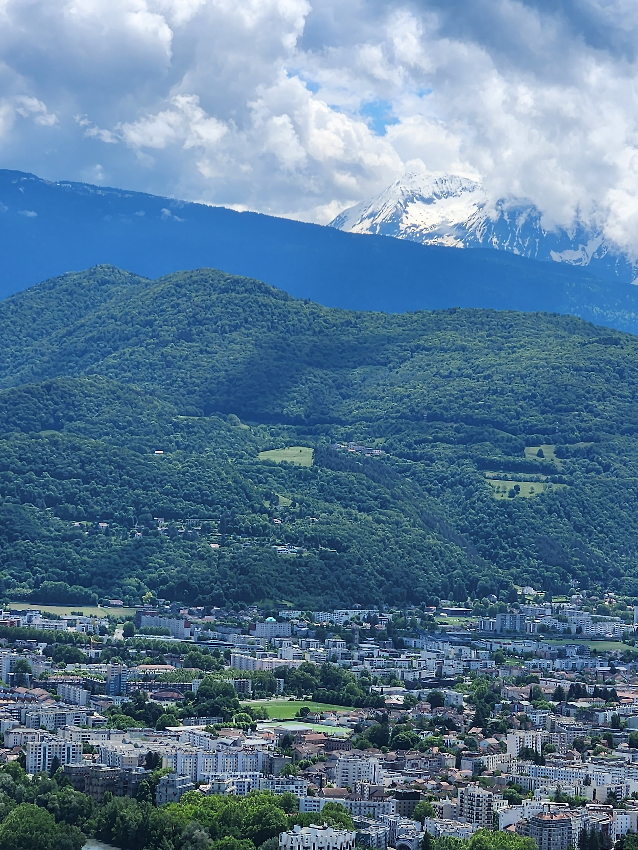 그레노블 시내로 들어왔다. 산촌 정도의 마을로 상상했는데 제법 큰 도시이다. 이전에 들렀던 오스트리아의 인스브루크보다도 더 큰 도시인 것 같다. 알고 보니 그레노블은 프랑스의 중요한 산업, 과학, 교육의 중심지 중 하나로서 프랑스의 “실리콘 벨리”라는 명성을 얻고 있다고 한다. 나노기술, 정보기술, 생명과학 분야에서 높은 명성을 가지고 있다고 한다. 그레노블은 이미 기권전 43년에 로마에 의해 설립된 도시인만큼 아주 긴 역사와 전통을 가졌다고 한다.