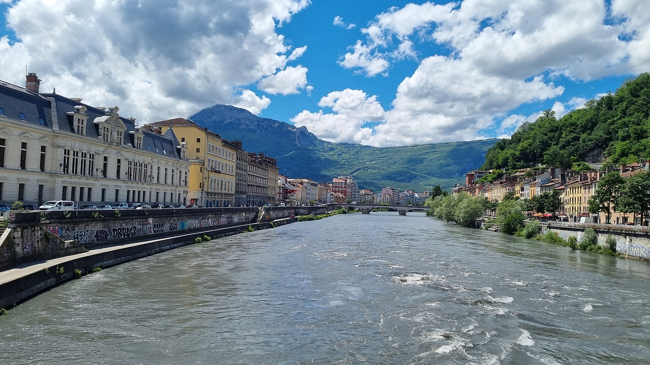 다음으로 그레노블을 관통하는 이즈에르 강으로 갔다. 모두 도보로 5분 이내의 거리이다. 아름다운 강이다. 강 위에는 몇 개의 다리가 걸려있는데, 내가 올라간 다리는 자동차 통행이 금지된 다리이다. 사람들이 즐거운 듯 걸어서 다리를 건너고 있으며, 간혹 자전거를 타는 사람도 보인다. 아름다운 강이다. 강 양쪽에는 붉은색 지붕의 중세식 건물이 늘어서 있어 강의 경치를 더욱 아름답게 만든다. 그렇지만 강물의 색깔은 회색으로 주위 풍경과는 어울리지 않는다.