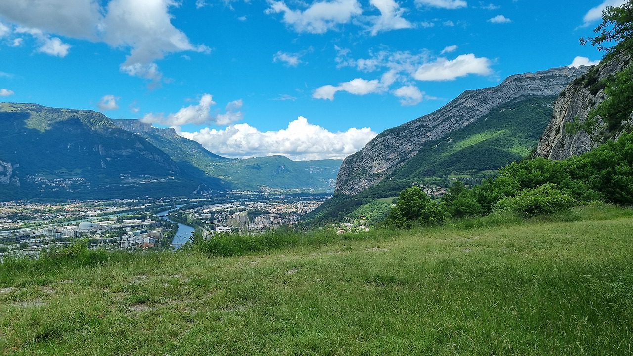 바스티유 요새가 어디에 있건 상관없다. 이곳에서 그레노블의 경치를 즐기면 그걸로 충분하다. 여기저기에 아이들과 함께 놀러 온 가족들이 많이 보인다. 이번 여행에서 아이들을 많이 본다. 이제 우리나라에서는 보기 어려운 정경이다. 이곳에서는 그레노블시가지의 전체 모습을 내려다볼 수 있다. 그레노블은 산들에 둘러싸인 분지에 위치하고 있다. 두 개의 강이 도시를 가로질러 간다. 참 깨끗하고 아름다운 도시이다. 풀밭에 앉아 빵으로 식사를 하는 사람들이 많이 보인다. 우리도 빵과 주스, 그리고 사과로 맛있는 점심을 먹었다.