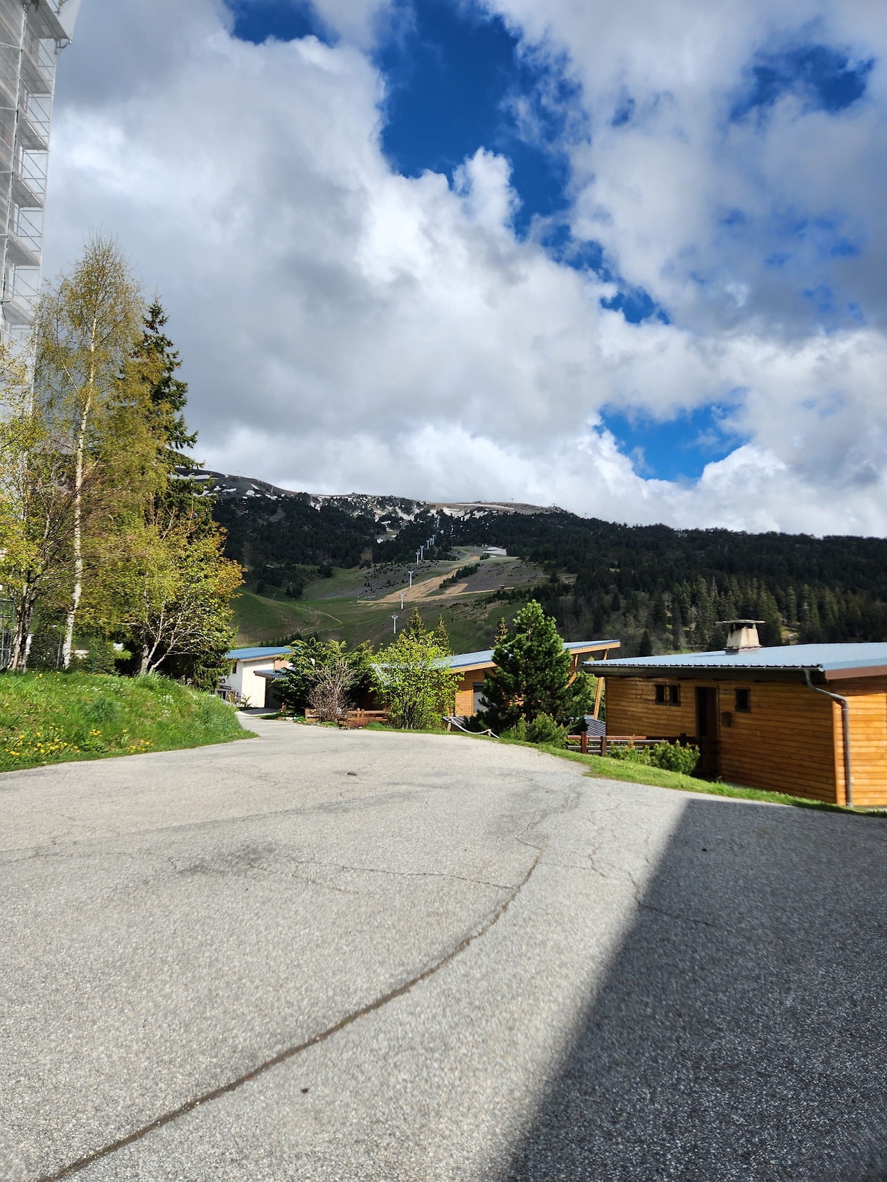 식사 후 집사람이 설거지를 하는 사이에 집밖으로 나와 산책을 하였다. 100미터 정도 가니까 스키장 리프트를 타는 곳이 나온다. 스키장 슬로프는 4-5개 정도가 되는데 얼마나 높은지 꼭대기는 구름 속에 숨어있다. 빈 리프트만이 산 위를 올라가더니 구름 속으로 사라진다. 날씨는 조금 쌀쌀한 듯 하지만 상쾌하기 그지없다. 한 시간 정도의 산책을 즐긴 후 숙소로 들어왔다.