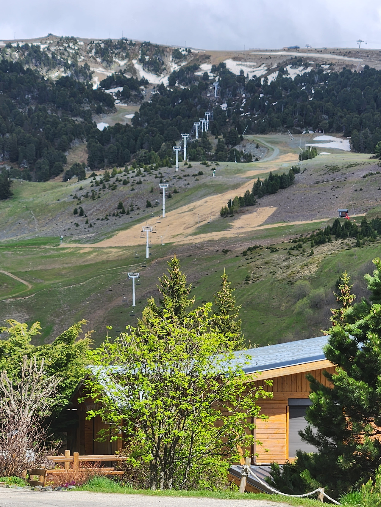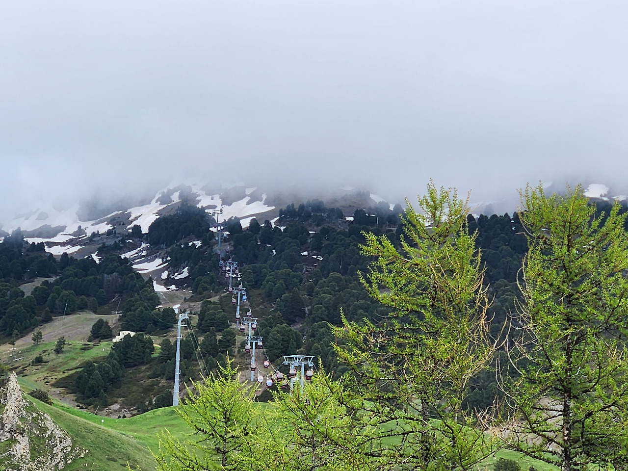 숙소의 창문 쪽은 베란다이다. 베란다로 나가니 알프스의 아름다운 풍경이 그림같이 펼쳐진다. 옆쪽 봉우리를 향해 올라 가던 스키장 리프트는 구름 속으로 사라졌다. 아득한 멀리 보라색으로 보이는 산은 여전히 눈을 이고 있다. 알프스의 한복판으로 들어왔다는 것을 새삼 느낀다. 이제 오후 7시가 가까워 오지만 아직 대낮처럼 날이 밝다. 좀 차가운 듯 느껴지는 공기는 너무나 상쾌하다. 그동안 쌓였던 화가 조금씩 사그라든다.