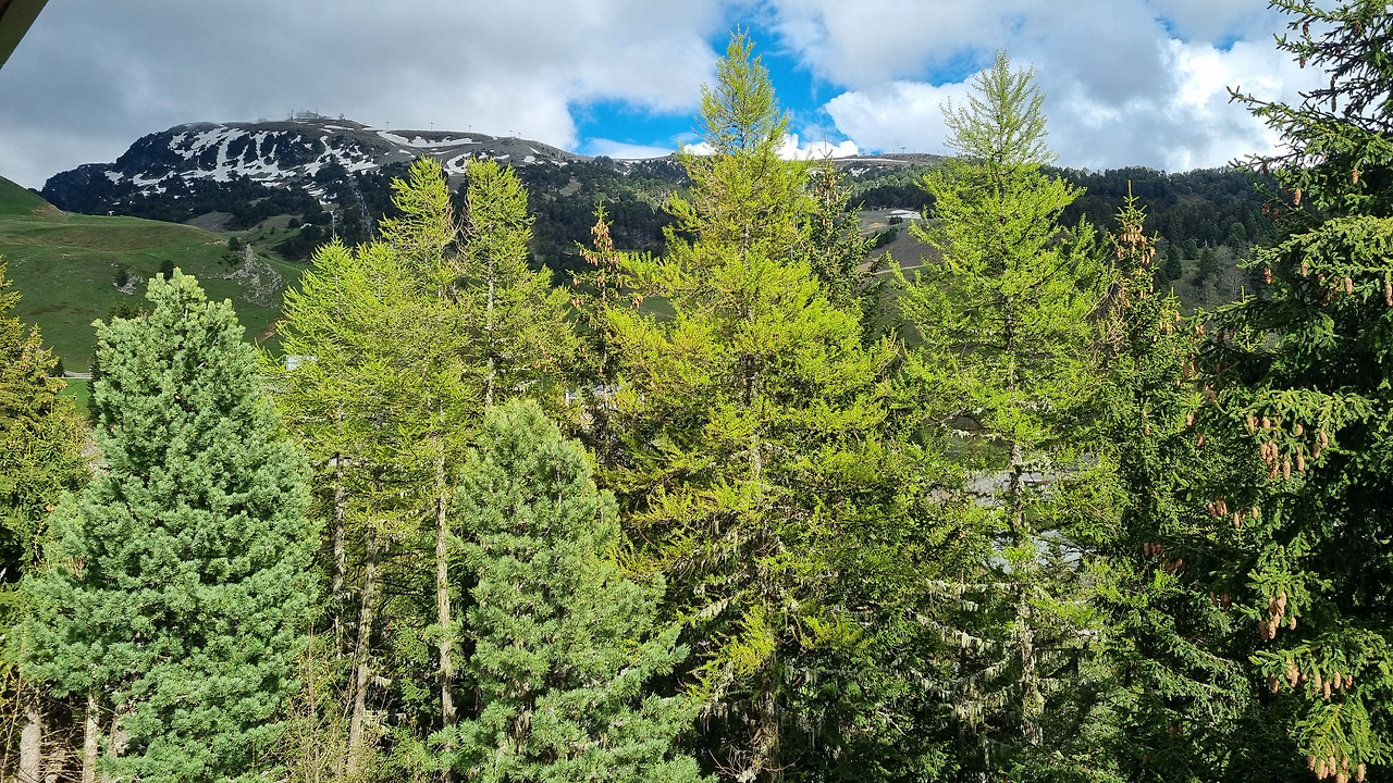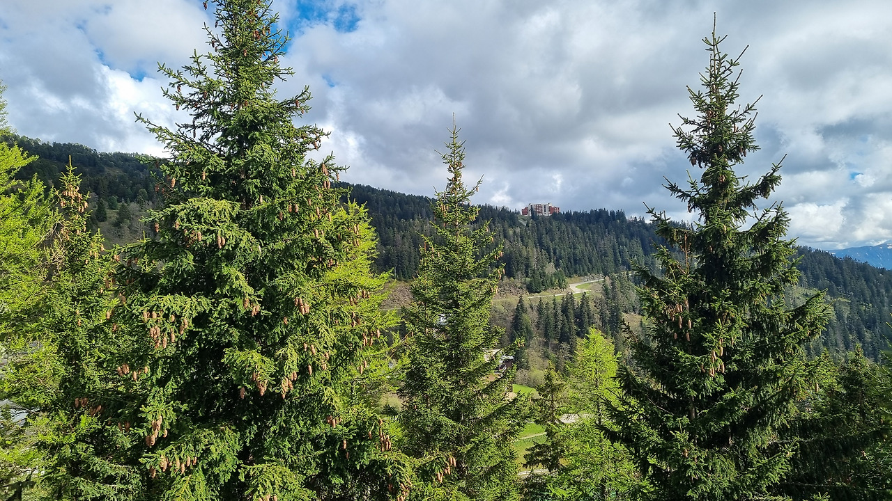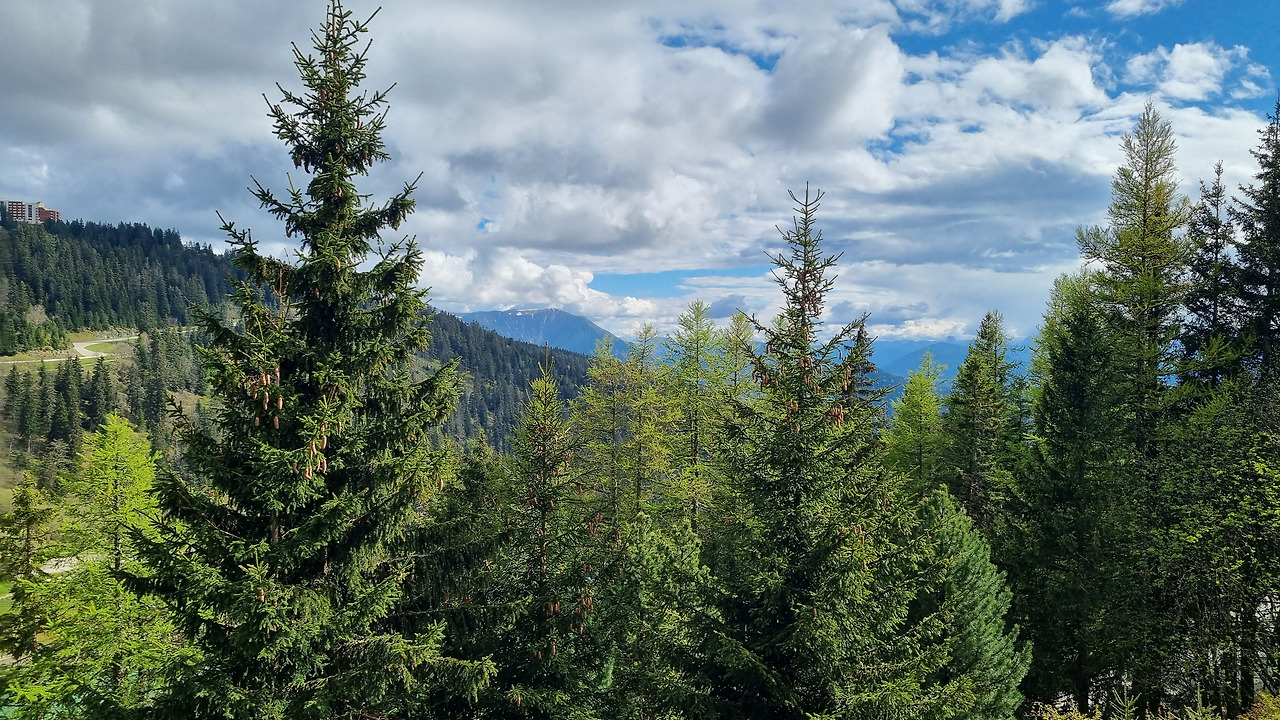 숙소 베란다에서 보이는 알프스의 숲