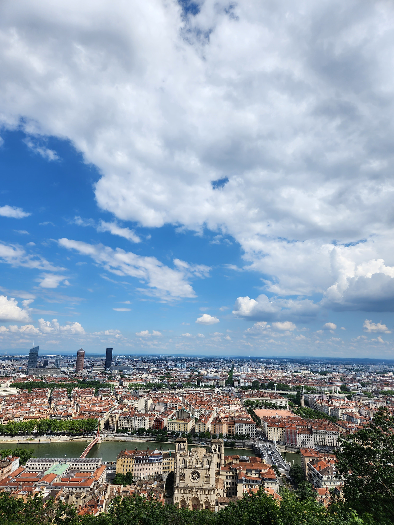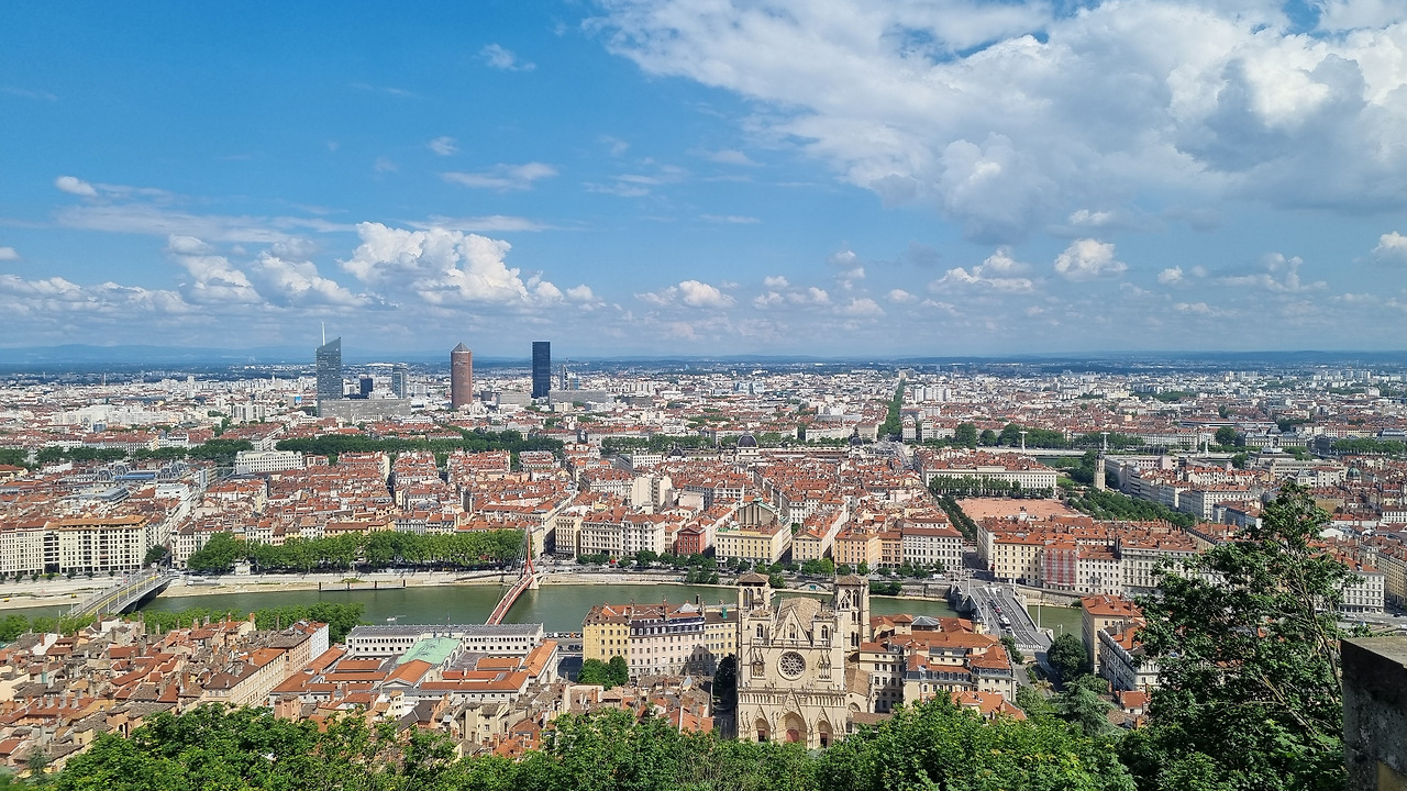성당 옆 담벼락에서 보면 리옹시의 전경이 한눈에 들어온다. 리옹시 역시 높은 빌딩은 많지 않다. 그렇지만 프랑스의 다른 도시와 비교한다면 그래도 높은 빌딩이 많은 축에 들어가지 않을까 생각된다. 높은 빌딩이라 해봤자 20층 정도이지만. 그리고 현대식 아파트도 꽤 들어서는 것 같으며, 독특한 모습의 특징 있는 건축물도 제법 보인다. 그래도 리옹시를 내려다보면서 가장 눈에 띄는 것은 중세풍의 거리이다. 어림짐작으로 중세풍 거리가 도시의 거의 1/3 정도는 차지하는 것 같다.
