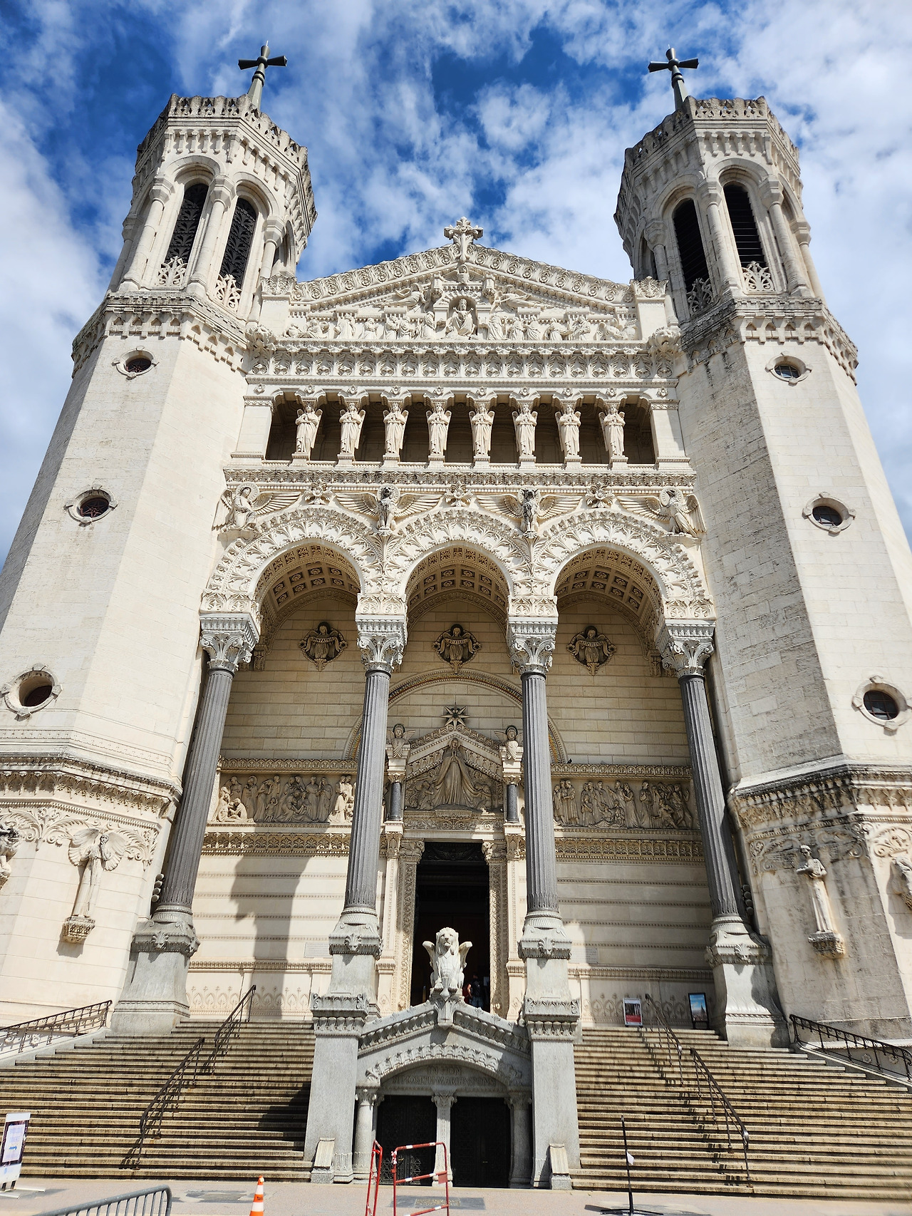 내비를 노트르담 성당에 맞추고 출발하였다. 호텔에서 직선거리는 7킬로 남짓이지만, 실제로 차가 달리는 거리는 거의 30킬로 가까이 된다. 옛 시가지가 그대로 보존되고 있기 때문에 시내 교통은 복잡하기 짝이 없다. 노트르담 성당이 위치한 푸르비에르 언덕은 상당히 높고 가파르다. 가파른 언덕 도로를 올라가 운 좋게 성당 바로 옆에 주차할 수 있었다. 주차권을 끊으려는데 뭐가 잘 안 된다. 어쩔 수 없이 무임주차. 노트르담 성당은 크고 화려하다. 그렇지만 이번 여행에서 빼어난 성당을 하도 많이 봐 이젠 덤덤하다.