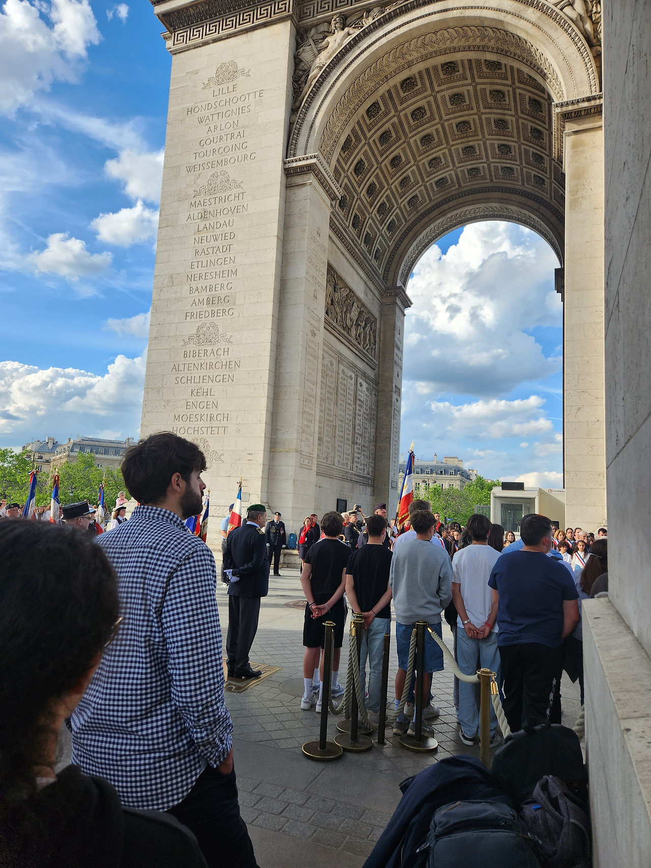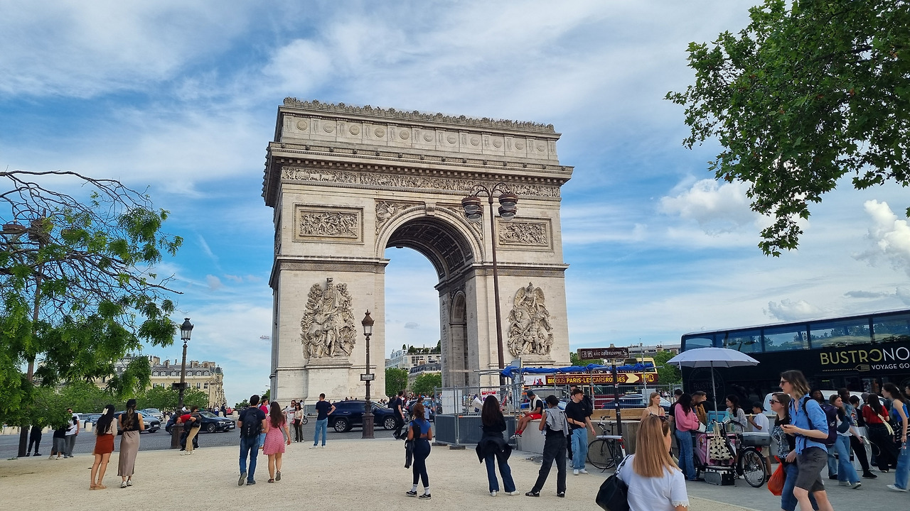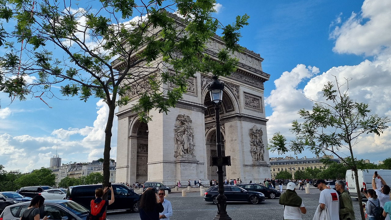 개선문을 정면에서 볼 수 있는 샹젤리제 거리와 그 건너 쪽에 있는 거리에는 관광객들이 많이 모여 개선문을 감상하면서 사진을 찍고 있다. 그런데 그보다 더 많은 사람들이 개선문 아래와 주위에 몰려있다. 개선문으로 가는 횡단보도는 없다. 그 많은 사람들이 거의 7차선 정도 되는 로터리를 무단횡단하여 그리로 건너간 것이었다. 로터리어서 차가 쉴 새 없이 다니는데도 위험을 무릅쓰고 건너간 것이었다.