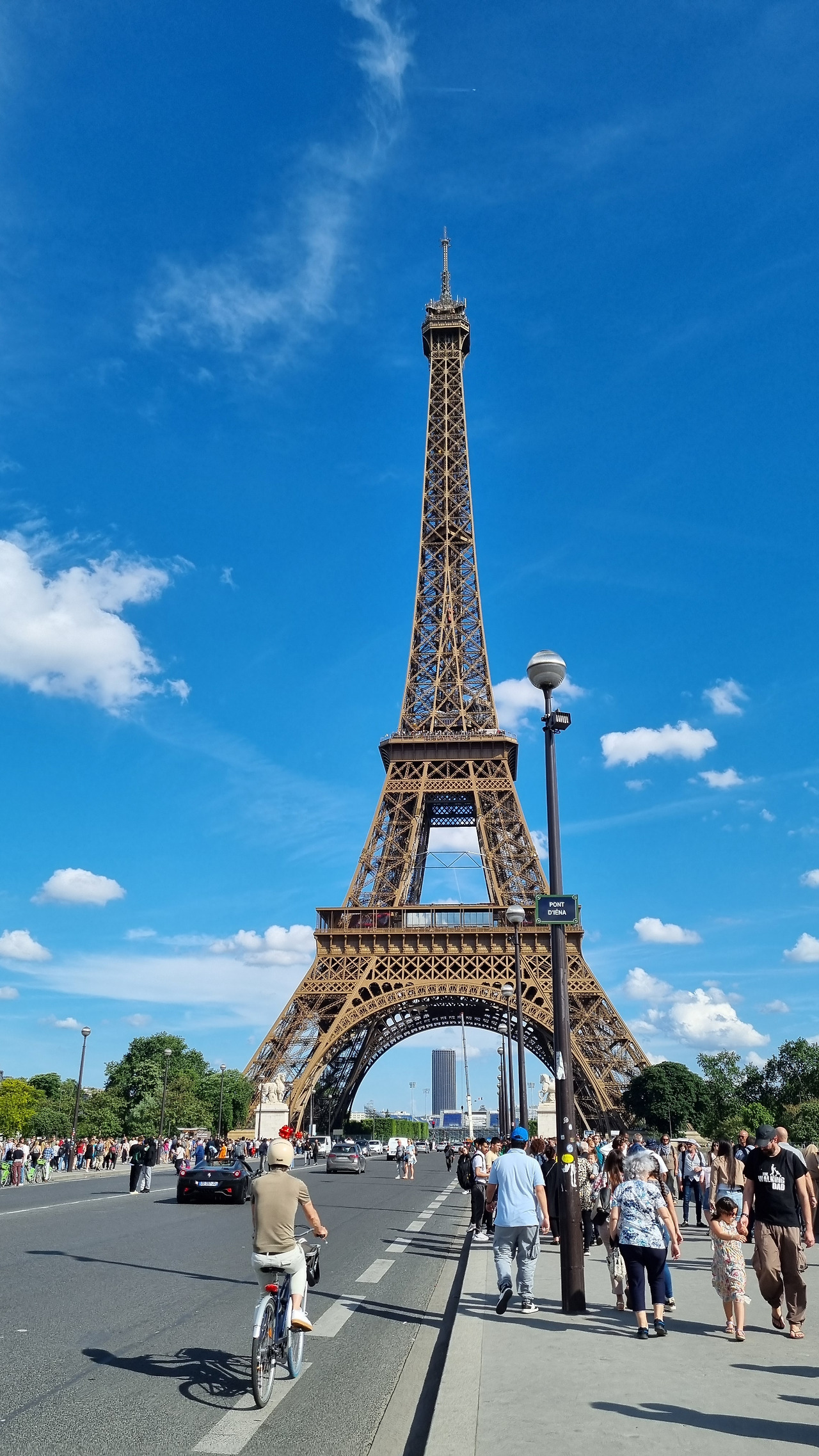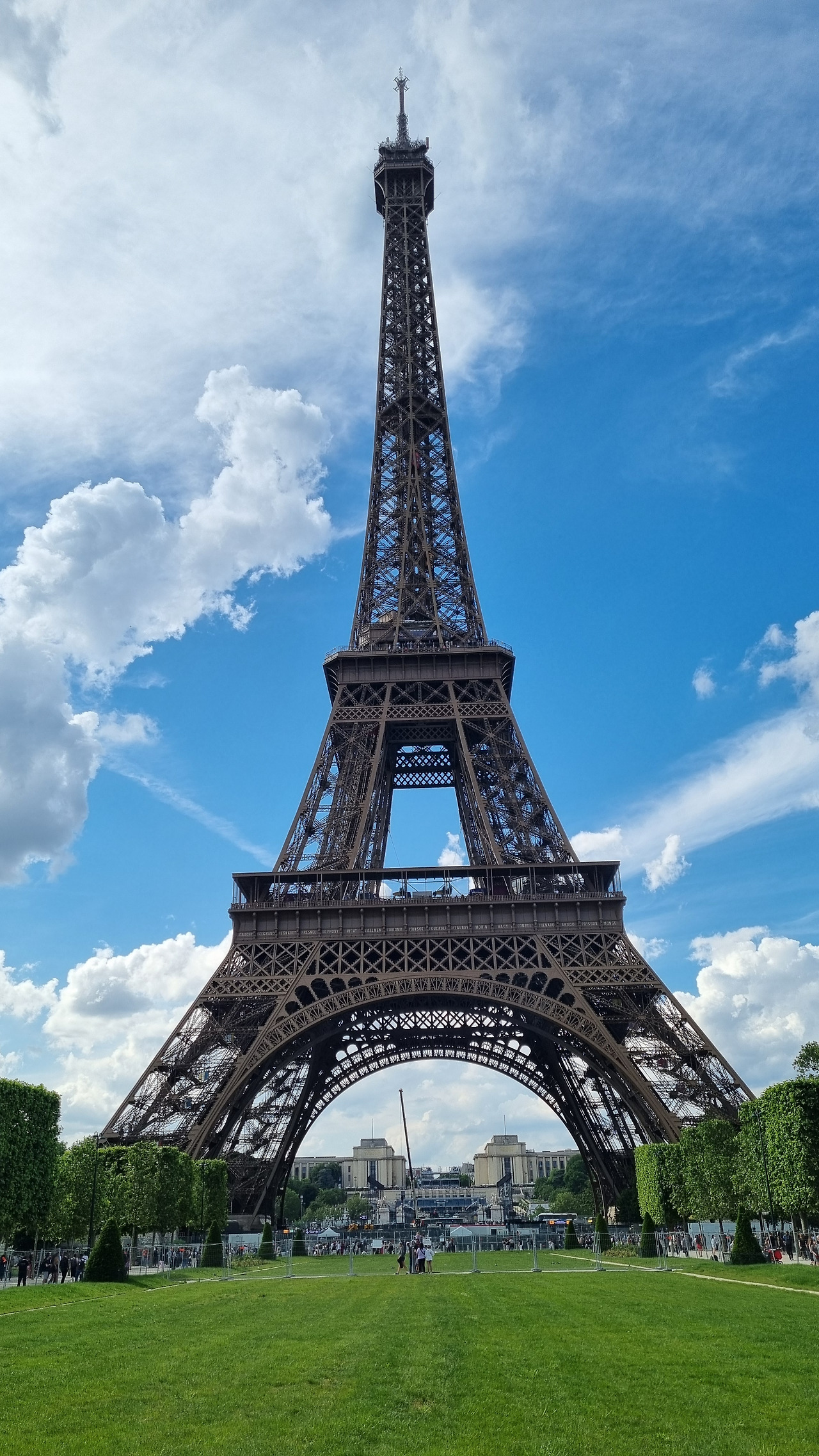 에펠탑은 역시 웅장하다. 많은 관광객들이 에펠탑 주위에 몰려있으며, 입장권을 사려고 긴 줄을 서있는 사람도 보인다. 에펠탑 뒤쪽의 잔디밭으로 갔다. 이곳에서 에펠탑이 더 잘 보인다. 푸른 하늘을 배경으로 우뚝 서있는 에펠탑은 정말 장관이다. 이전에는 뒤쪽에 사각형의 큰 연못이 있었다고 기억하는데, 지금은 보이지 않는다. 20년 전 이곳에서 비둘기 똥 폭격을 받았다. 머리에 떨어진 비둘기 똥을 처리할 방법이 없어, 결국 연못에 머리를 집어넣고 씻었다.