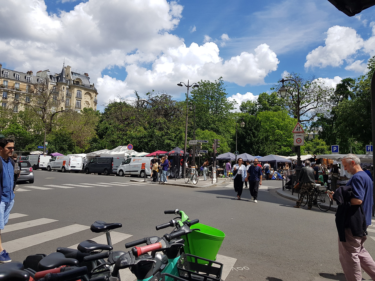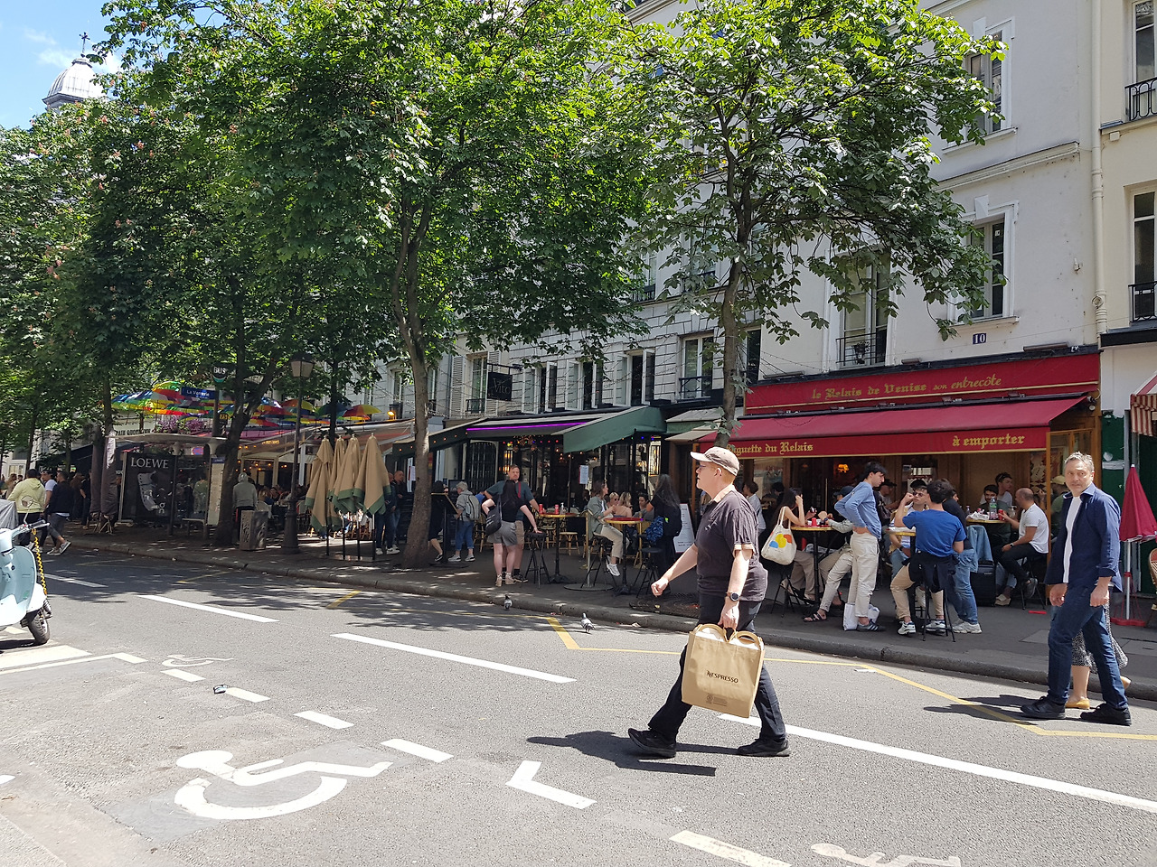이제 슬슬 루브르 박물관으로 가야 한다. 도중에 옛 거리엔 르 마레(Le Marais) 지구가 있다. 식당과 카페들이 많이 몰려 있는데, 벌써 점심때가 지났음에도 사람들이 어마어마하다. 이곳에서 점심을 먹을 예정이었으나 식당마다 길게 늘어선 줄에 엄두가 나지 않는다. 할 수 없이 근처에서 이름도 알 수 없는 길거리 음식으로 점심을 때웠다.