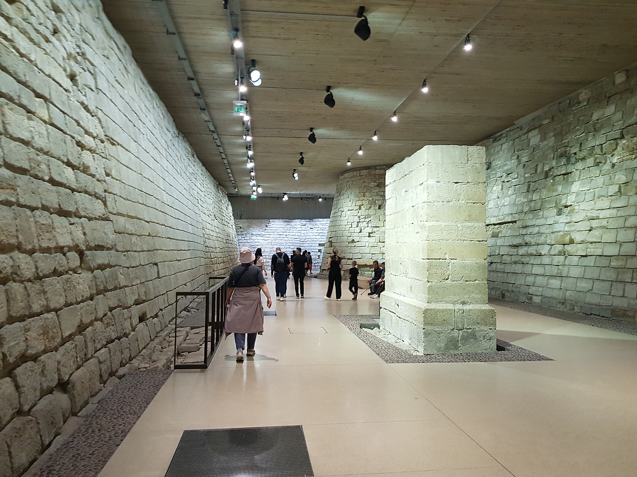 여기에는 주로 루브르 박물관의 역사, 현재의 모습 등이 중심으로 전시되어 있다. 집사람이 너무 피곤하다며 전시관 안에 있는 의자에 앉아 쉬겠다고 하며 혼자 구경하고 오란다. 안으로 들어가 구경을 하는데, 이곳은 단조로운 성벽과 같은 구조물이 계속 이어지고 있어 별로 볼 것이 없다. 자꾸 휴대폰에 신경이 쓰여 차분히 전시물을 둘러볼 여유가 생기지 않는다. 5분 좀 넘게 둘러보고 집사람이 기다리고 있는 곳으로 왔는데, 기다리고 있어야 할 집사람이 보이지 않는다.