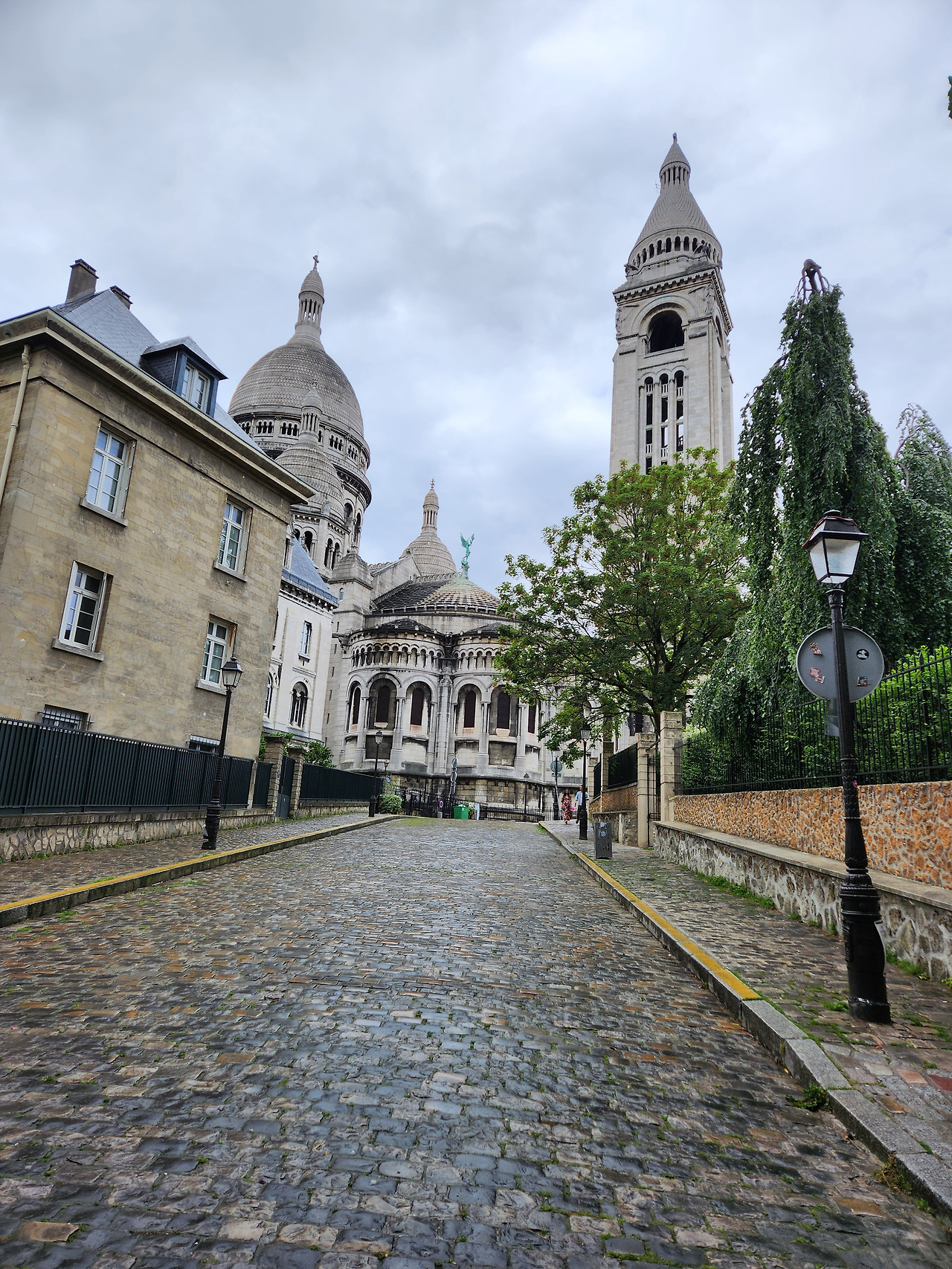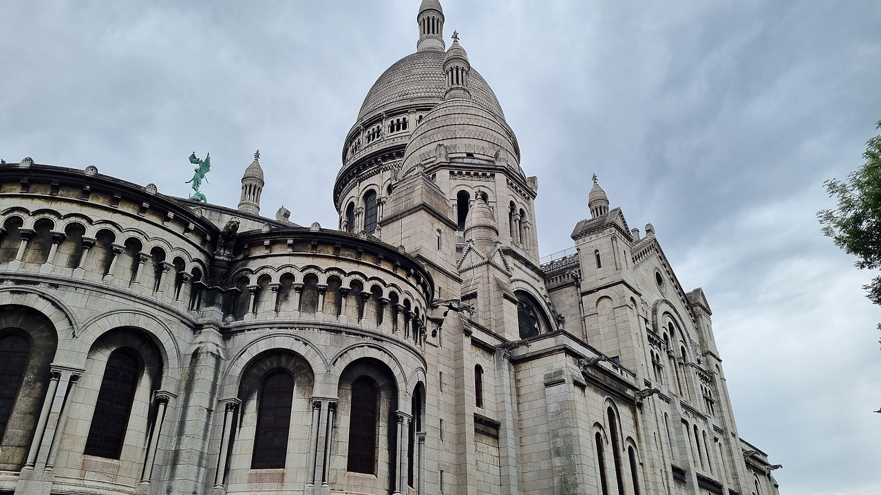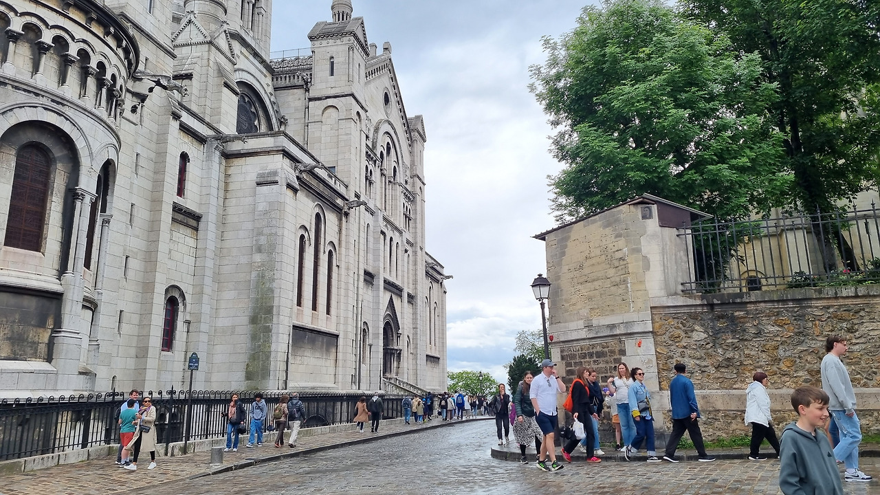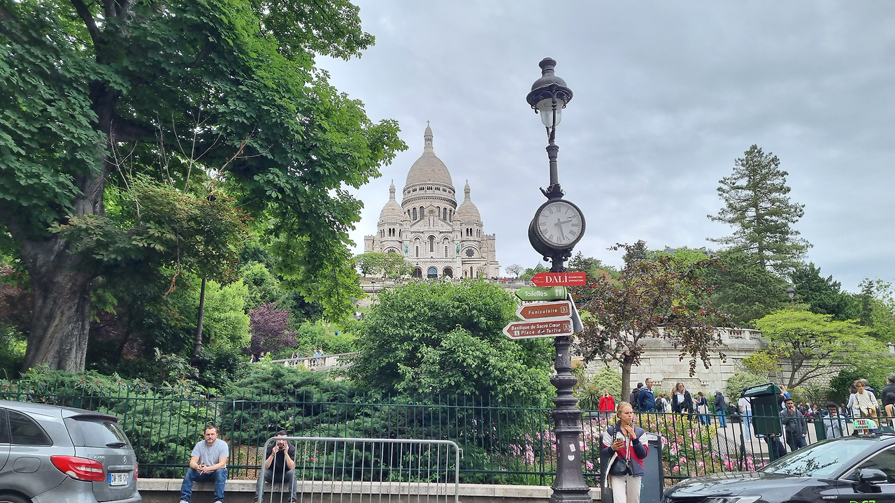 다음은 몽마르트르 언덕이다. 지하철을 타고 가까운 역에 도착하여 지상으로 올라갔더니 갑자기 비가 내린다. 심한 비는 아니지만, 맞고 다니기에는 부담스럽다. 레스토랑에라도 들어갈까 했으나 곧 비가 멈춘다. 완만한 경사길이 계속되다가 좁은 데다 아주 경사가 급한 계단길이 나온다. 계단을 다 오르니 갑자기 큰 탑이 나오더니 둥근 성당의 지붕이 나온다.