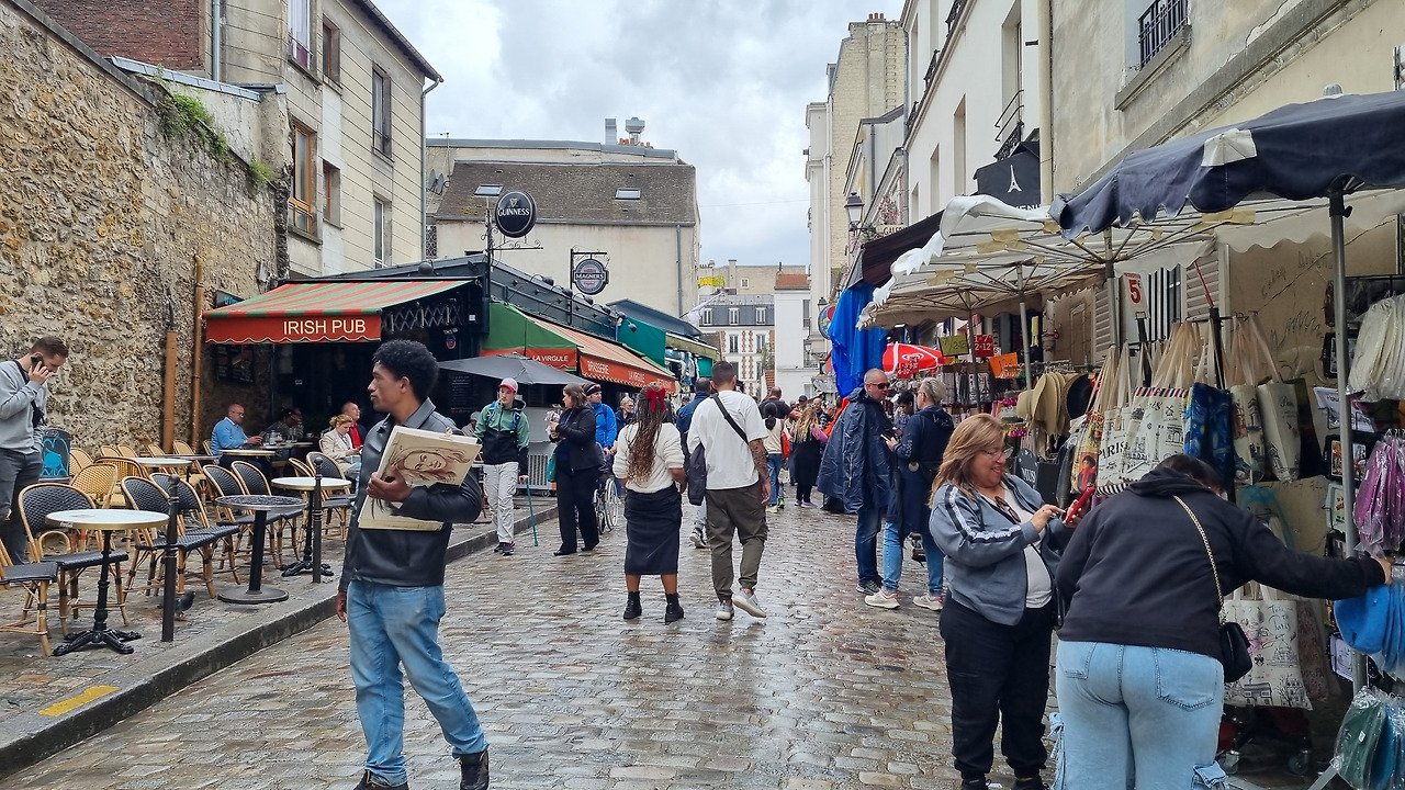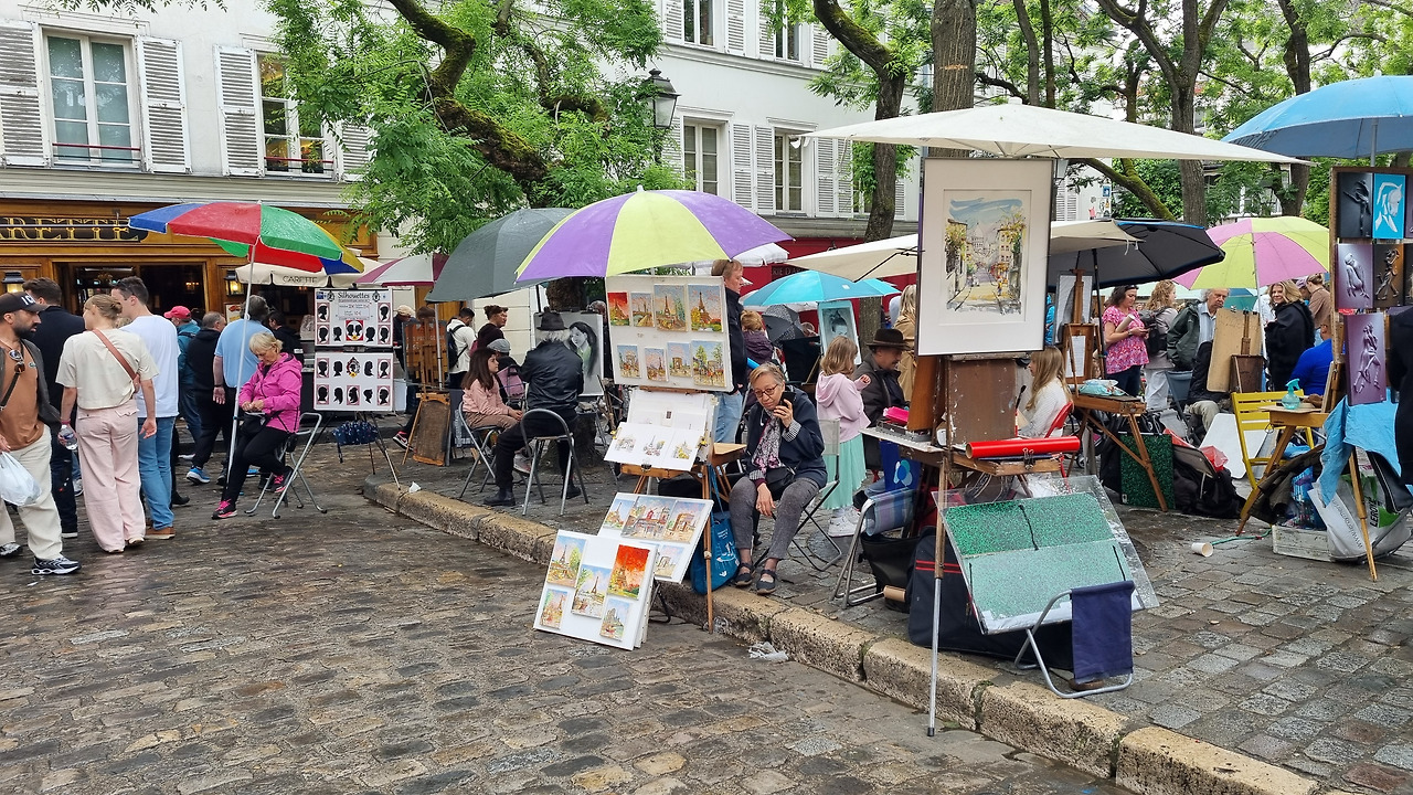 몇 달 전에 <파리의 미국인>이러는 고전영화를 감상하였다. 2차 대전 중 유럽에서 근무하던 미군 병사가 전쟁 후 파리에 남아 화가를 지향하며 그림을 그리며 살다가 참된 사랑을 만난다는 내용의 뮤지컬 영화였다. 영화에서 주인공은 몽마르트르 언덕에서 그림을 그리고, 그 언덕의 골목길에서 그림을 전시하여 팔고 있었는데, 바로 그 골목길도 보았다. 영화 속에서 보았던 장소를 이렇게 직접 와서 실제로 보는 것도 큰 재미이다.