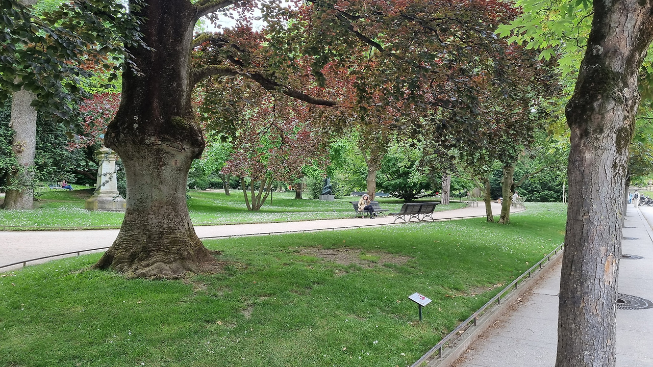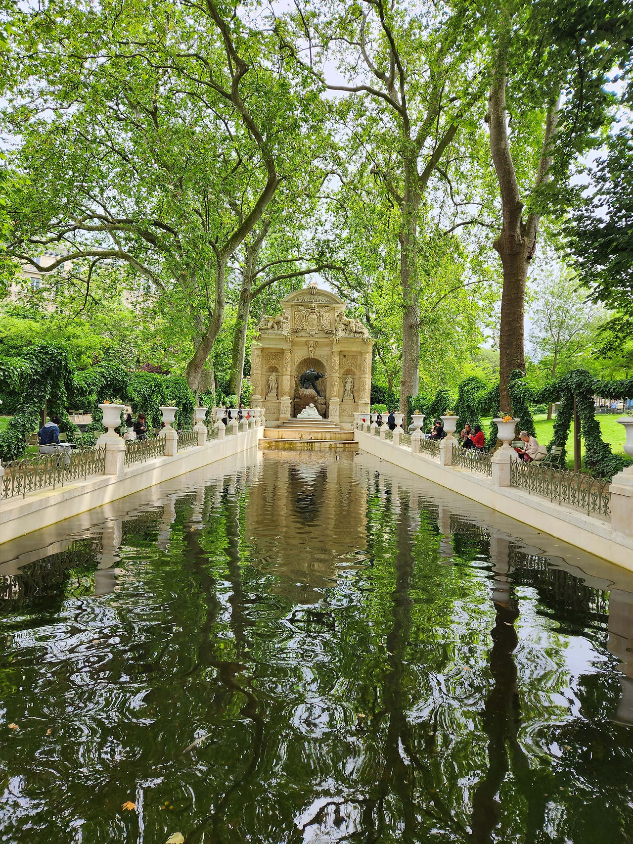 궁전 뒤쪽을 통해서 궁전과 공원으로 간다. 그 옆쪽으로도 작은 공원이 마련되어 있는데, 나이를 알기 어려운 아름들이 큰 나무들이 서있다. 그 옆에는 길쭉한 직사각형 모양의 연못이 있고 그 끝에는 작은 분수가 있는데, 퐁텐느 메디씨스, 즉 메디치 분수라 한단다. ‘메디치’라면 이탈리아 피렌체를 통치하였던 르네상스 시대의 명문 가문이다. 그런데 왜 이곳에 메디치 분수가 있을까? 바로 이전에 소개한 바 있는 메디치 가문의 딸로서 프랑스 왕비가 된 마리아 데 메디치(Maria de' Medici)가 이 궁전을 세웠기 때문이다. 정원을 다 둘러보고 싶었지만, 너무 넓어 엄두가 안 난다.