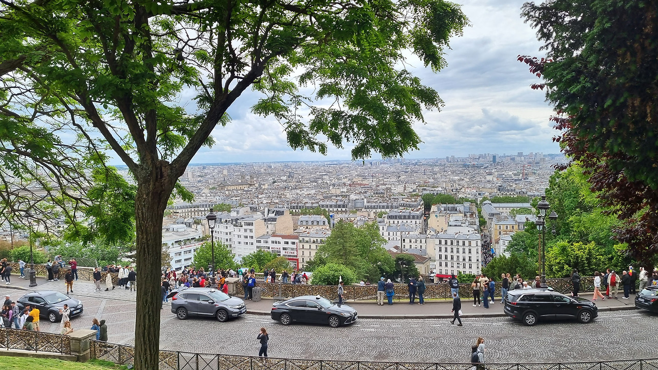 몽마르트르 언덕에서는 파리시가 내려다 보인다. 그러나 노트르담 등의 문화재가 있는 쪽은 아닌 것 같다. 높고 큰 빌딩은 하나도 없이 낮은 집들만이 끝없이 펼쳐지는 인상적인 도시이다. 조금 전까지 비가 내리던 날씨는 어느덧 개고 햇빛이 비친다.