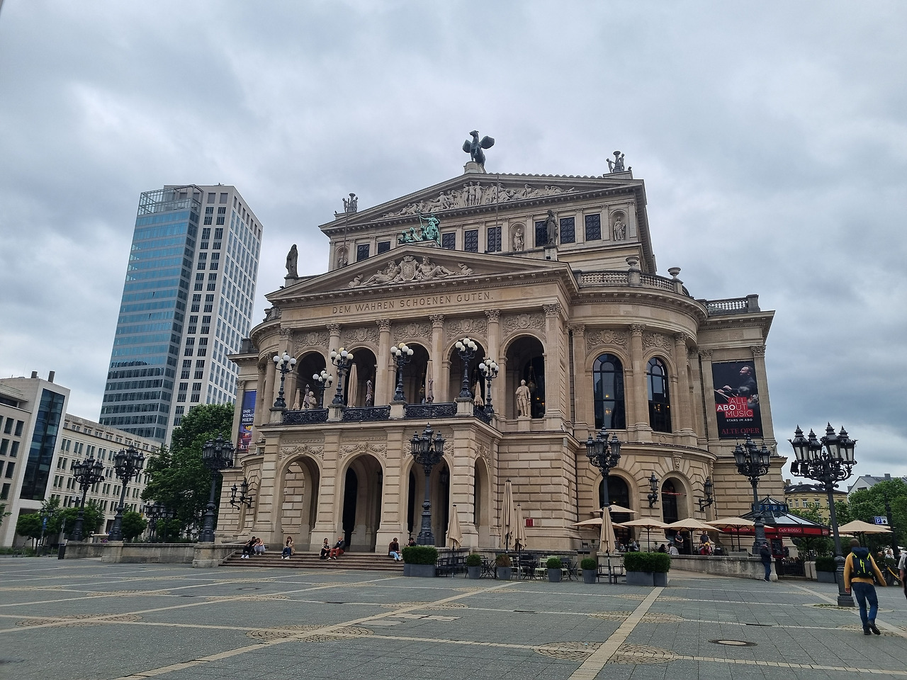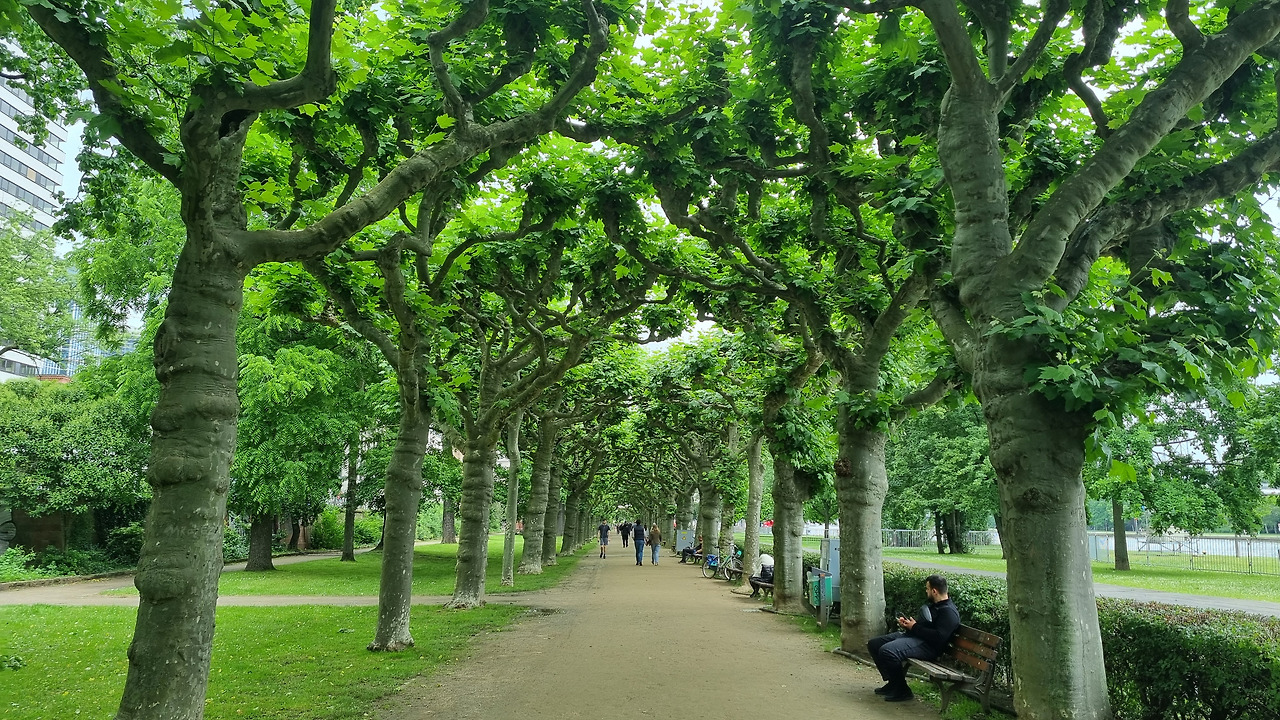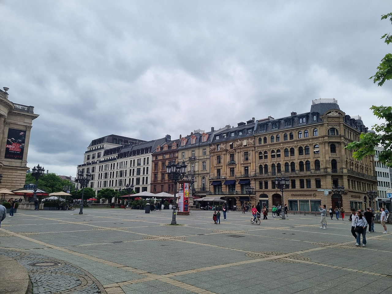 괴테 동상이 있는 광장과 이어지는 광장으로 오니 프랑크푸르트 오페라하우스의 고풍스러운 석조건물이 보인다. 이 광장에서 바로 도심공원으로 연결된다. 큰 나무들이 무성한 아주 잘 가꾼 공원이다. 나무 그늘로 인해 컴컴한 느낌이다. 공원의 숲속 길을 기분 좋게 걸어오는데, 공원 끝부분에 노숙인처럼 보이는 사람들이 서성거리고 있다.