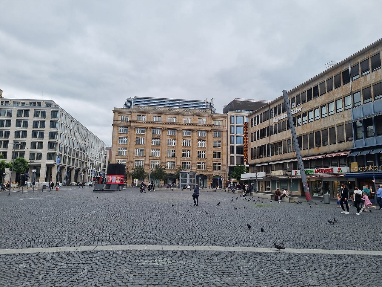 특별한 행선지가 있는 것이 아니므로 걷기 편한 길을 떠라 시가지 안으로 들어왔다. 걷다 보니 어제 찾았던 구텐베르크 동상이 서있는 광장으로 왔다. 어제 가지 않았던 다른 길로 가니, 다시 광장이 나오고 큰 동상이 하나 서있다. 다가가 확인을 해보니 괴테의 동상이다. "파우스트"와 "젊은 베르테르의 슬픔" 등 수많은 명작을 쓴 괴테는 이곳 프랑크푸르트에서 태어나 이곳에서 교육을 받았다고 한다. 그래서 이곳에는 괴테의 생가가 보존되어 있으며, 괴테 박물관도 있다.