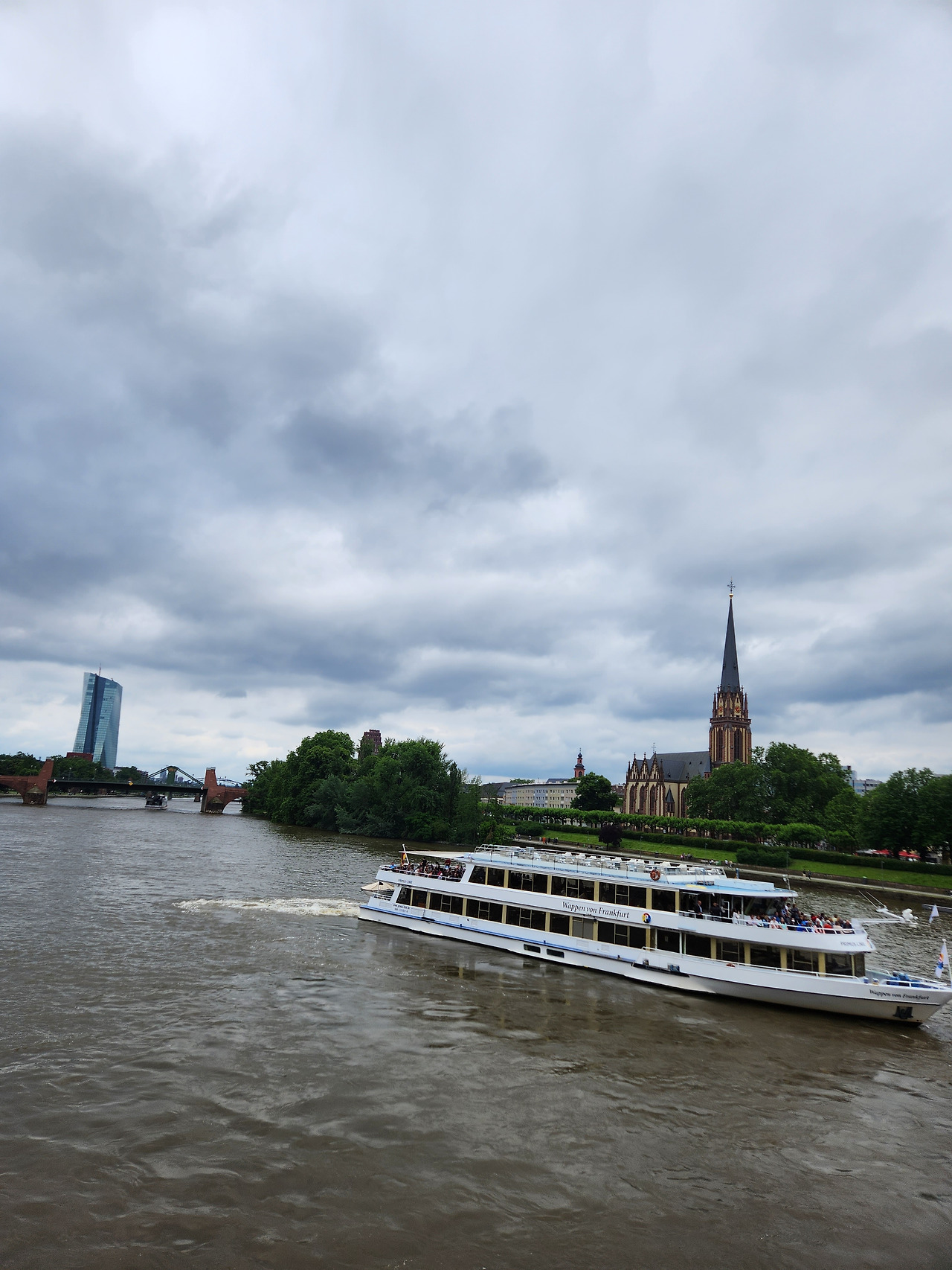오후가 되면서 날이 개인다. 호텔에서 얼마 떨어지지 않은 마인강변으로 산책을 갔다. 마인강은 라인강의 지류인데, 이 강을 이용한 수상교통과 물류 덕택으로 프랑크푸르트가 일찍부터 상업과 교통의 중심도시로 발전할 수 있었다. 강은 수량은 풍부한데 그다지 넓어 보이지는 않는다. 기껏해야 300미터 정도에 지나지 않을 것 같다.