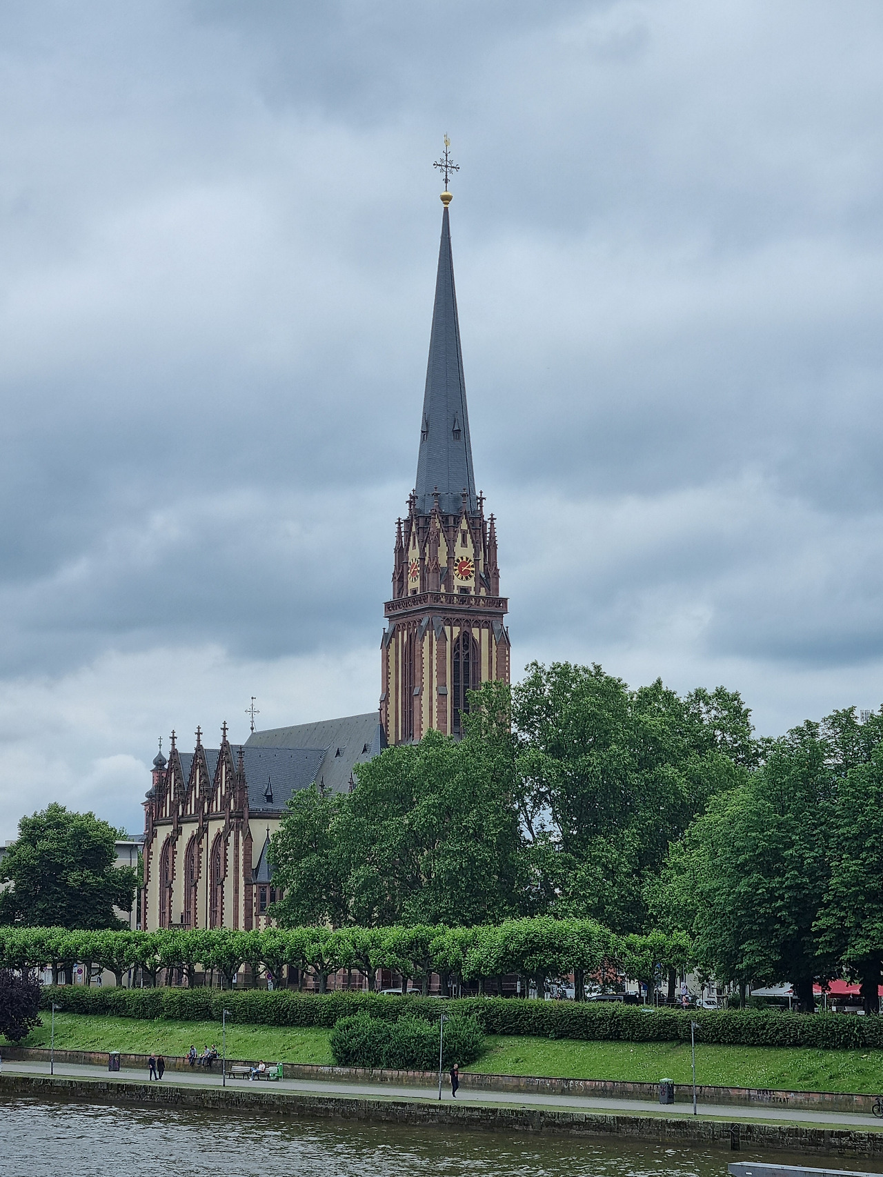 산책로 옆으로는 어린이 놀이터가 많이 마련되어 있다. 부모들이 아이들을 데리고 나와 함께 즐겁게 놀고 있다. 이번 여행에서 방문한 도시들마다 아이들이 많이 보였다. 참 부러운 일이다. 강 저쪽에 아이젤너 다리(Eiserner Steg)가, 그리고 강 건너 먼 곳에는 교회의 첨탑이 보인다. 아이젤너 다리는 19세기 중반에 건설된 보행자 전용의 강철 다리이다.