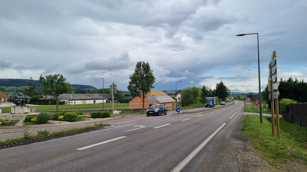 갑자기 벌판의 풍경이 바뀐다. 지금까지 벌판은 밀과 보리, 목초였지만, 갑자기 포도밭이 나타나기 시작한다. 좀 더 달리니 아득한 벌판 저 끝까지 전부 포도밭이다. 알고 보니 이곳이 와인으로 유명한 부르고뉴 지방이며, 부르고뉴 와인의 중심지가 바로 본느라 한다. 본느가 가까워 올수록 사방은 모두 포도밭으로 변한다.